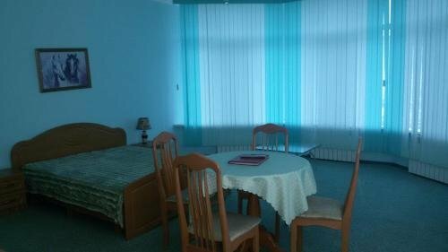 Номер “Люкс” - это большой, светлый и удобный номер с улучшенной планировкой. В гостиной имеется: диван-кровать, холодильник, журнальный столик, телевизор и сплит-система. В спальне - двуспальная кровать, шкаф, письменный столик, пуфик, зеркало. В...