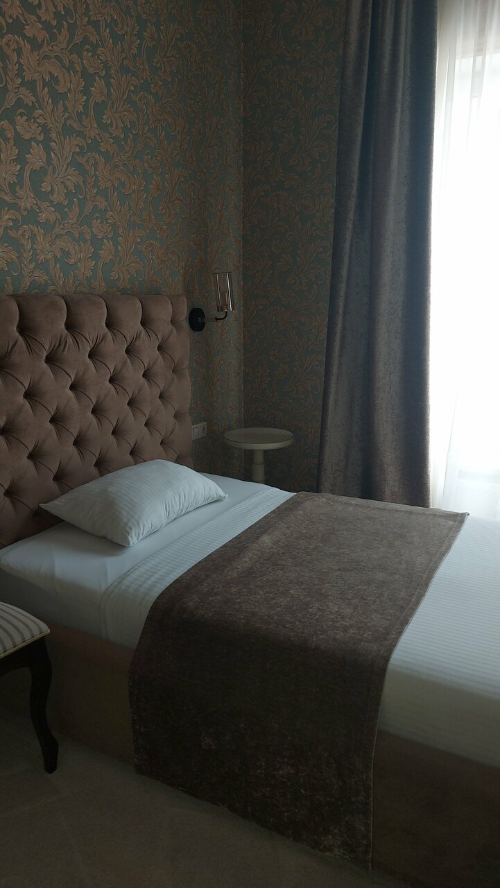 Хорошая, не большая гостиница. В номерах свежий ремонт. Немного помпезно для меня, но в целом глаз не мозолит. Удобные кровати, хороший сервис. Приличные завтраки(вариантов завтраков нет, но готовят вкусно и сытно). Вокруг гостиницы есть пару не плохих кафе.