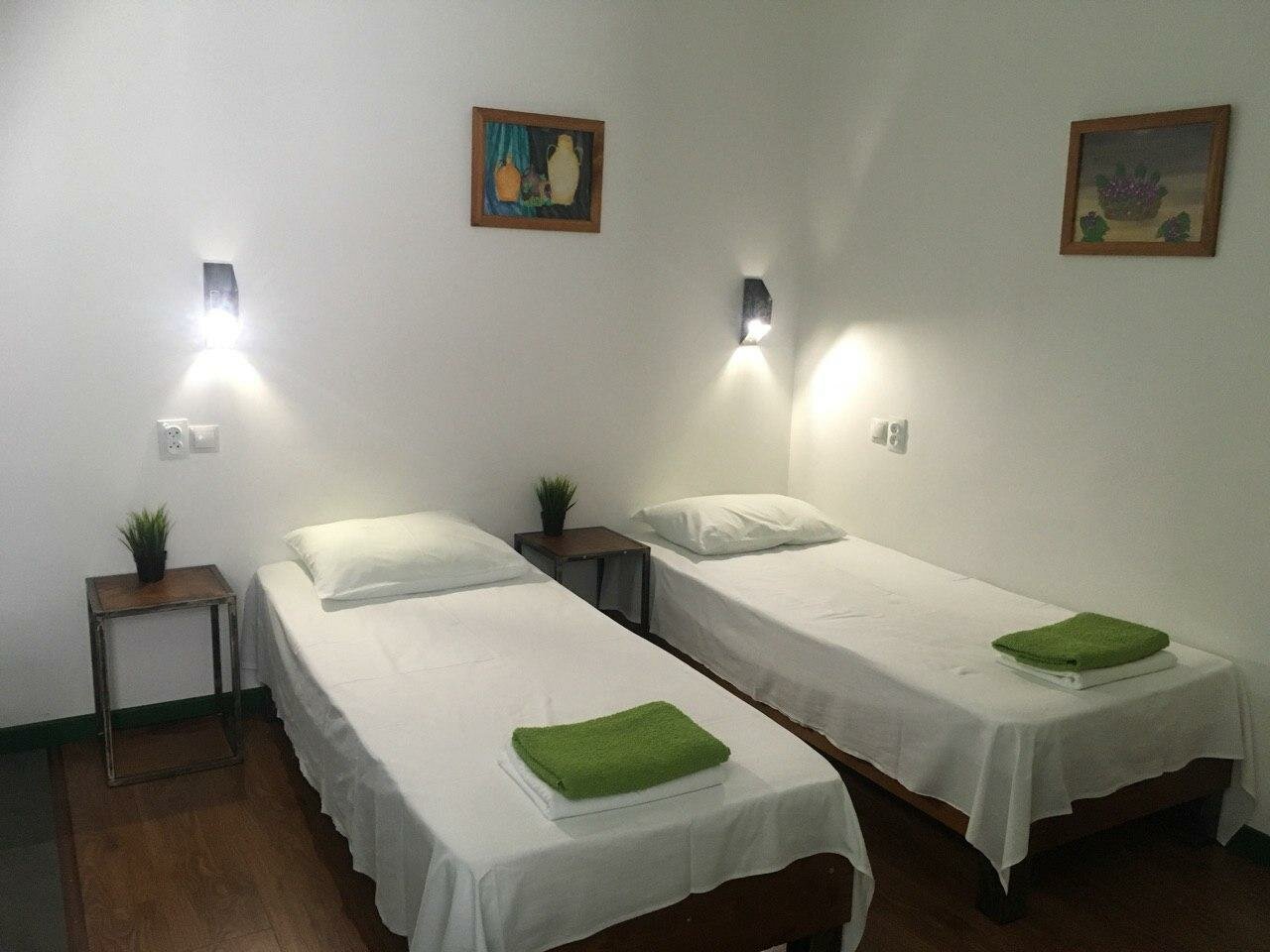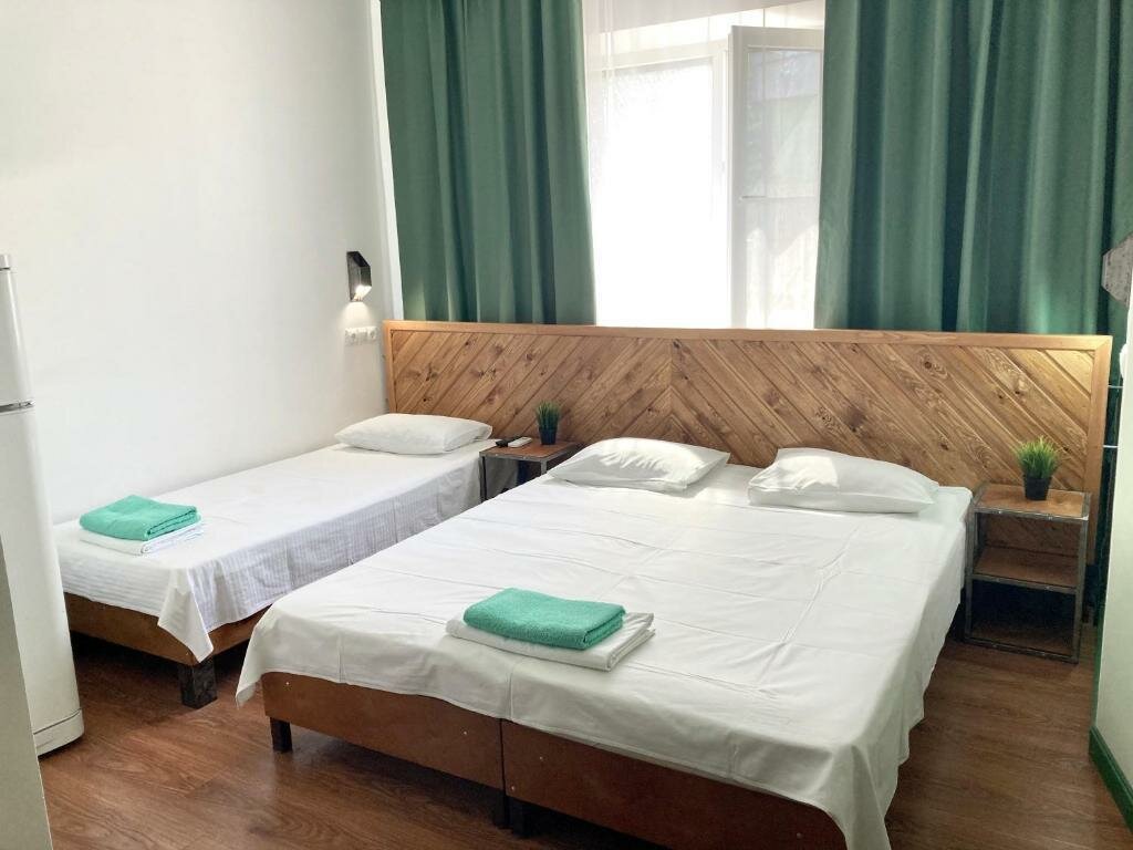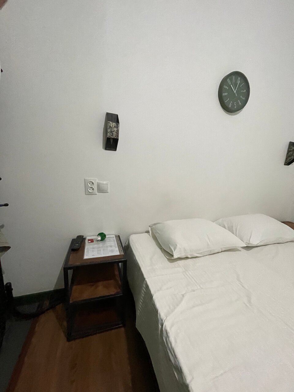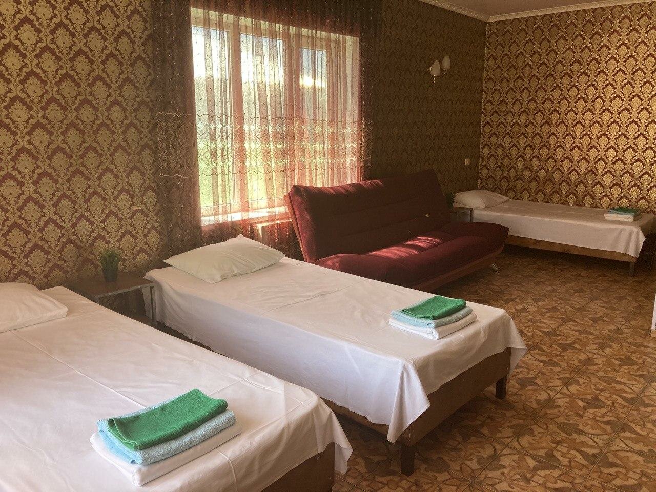Вообще не понимаю за что люди ставят такие оценки!!!Посмотрел в Яндекс навигаторе 4.7 По факту 1 звезда,за чистое постельное бельё. Едем с маленьким ребёнком,попросили номер с одной большой кроватью,конечно есть приезжайте 2500. По факту две маленькие сдвинуты вместе,фиг бы с ним если бы был один большой матрас,в итоге между матрасов ребёнок грудной.Кому не понятно, попробуйте поспать между матрасов. При входе, все ароматы кухни, гости готовят сами,чем только не воняет!Нас повели на второй этаж,благо эта вонь там не чувствуется.Проходим через комнату где стоит 4 кровати, следующая наша(проходная комната) В нашей комнате удобства, туалет и ванна, ни комната ни ванна не закрываются.Наша комната получается тоже проходная,в туалет или ванну.Слава Богу вечером ни кто не бегал,а вот утром переодически пытались.Минусы можно писать ещё долго, рваные диваны, торчат провода со стены, отпадывает плитка, и т.д. и т.п.