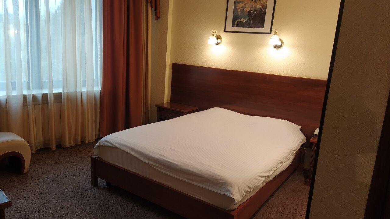 Не плохая гостиница. В номере тепло, есть всё, что нужно для нормального проживания от холодильника, до фена. В номере и в коридоре чисто. Персонал приветлив. Гостиница находится в центре города. Телевизор ламповый, каналы только центральные, да и то не все. Подушки худенькие. Розетку для зарядки долго искал и нашел только одну, под столом.