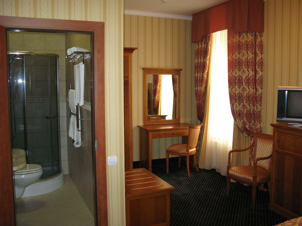 Гостиница конечно уставшая. Требуется ремонт. За это минус звезда. Но это лучше чем квартира в доме немецкой постройки, где присутствует ужасный запах. Вода есть горячая и холодная. Комплекты шампунь и гель для душа, а так же паста и щетка. Завтрак включен. Расположение тоже удобное.