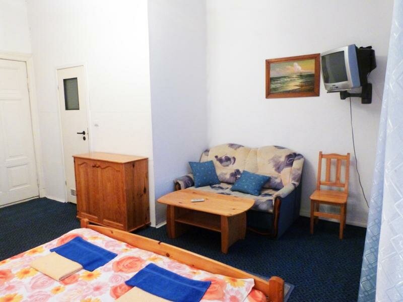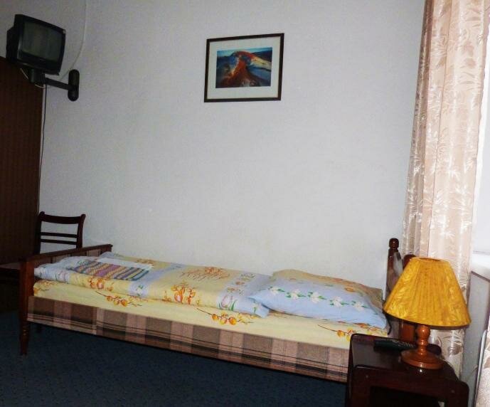 Большая комната. Высокие потолки. Очень старый телевизор и на этаже не горел свет. Фен у администратора. Персонал приветливый, можно днём на кухне выпить чаю. Завтрак не плохой. Но стоимость на мой взгляд завышена.