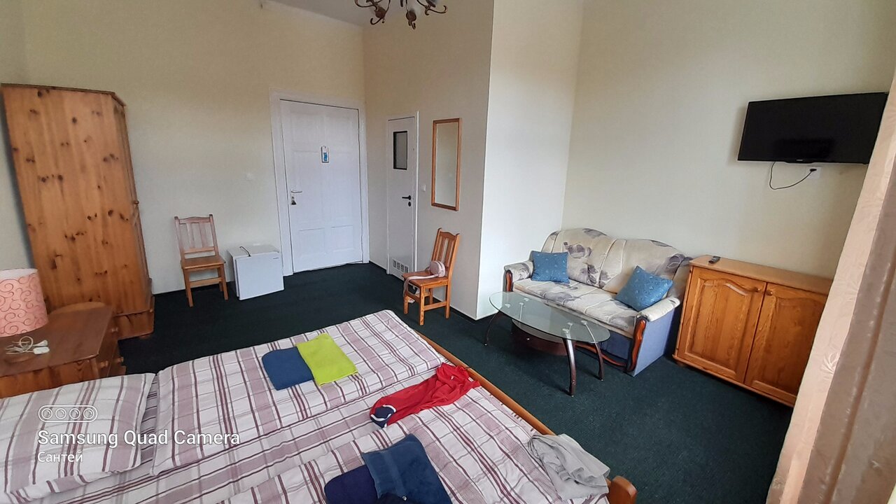 Бомжатник! Номер стоял 2000 рублей. Конечно за эти деньги люкс не ждал, но не раз ночевал в дешёвых гостиницах Литвы, Латвии и Чехии, где номер стоял 30 евро, ожидал нечто схожее, а не древнюю мебель, старый ремонт, непонятную душевую и песок на полу. Ещё и при заезде сидел пьяный сторож, который как в колхозе обращался на ‘ты’.