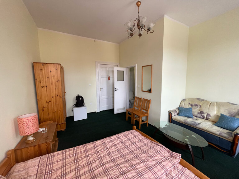 Завтрак включен, кровать мягонькая, ванная чистая, по сравнению с кронверком — супер дорогие аппартаменты. А если адекватно, то переночевать намана. Запах ещё классный на лестнице, как будто снова в санатории побывала, прям навеяло