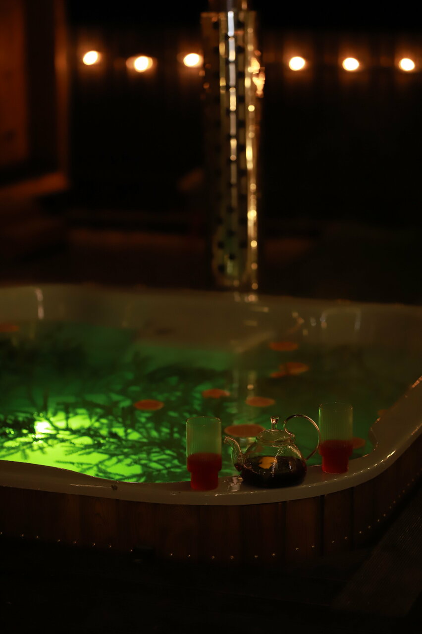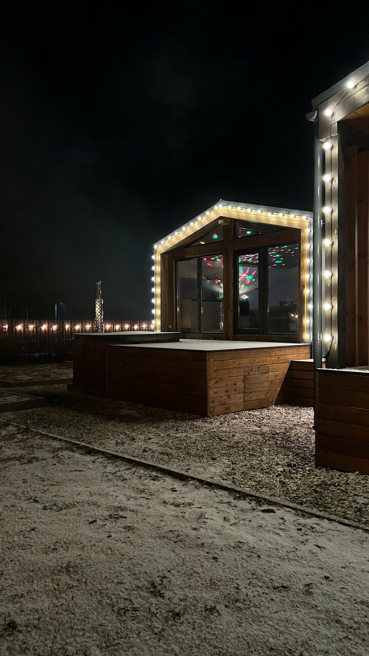 Отличное место, все новое Горячий чан — отдельная песня детей не выгонишь ) Очень грамотное разделение дома на спальную часть и часть для поздней посиделки в бане и караоке