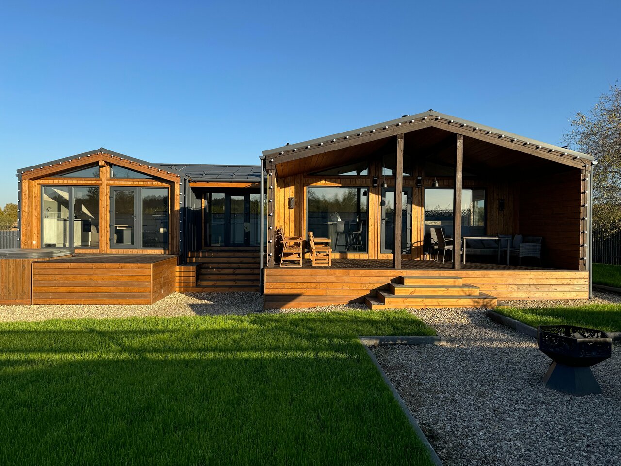 - Красивая территория, близость к лесу.; Удобные спальные зоны (несколько санузлов, душевых).; Хорошая баня с легким управлением.; Дополнительные удобства (беспроводные зарядки, караоке).; Панорамные окна, много света.