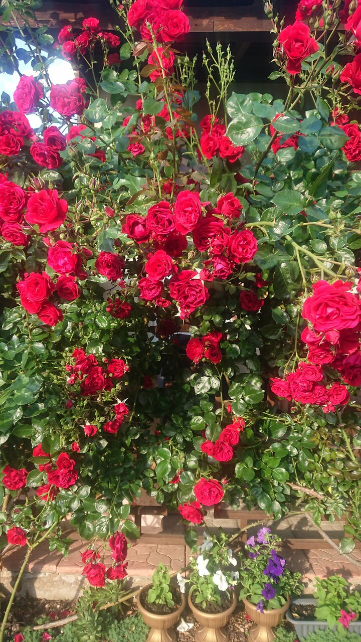 - Красивый двор с цветами.