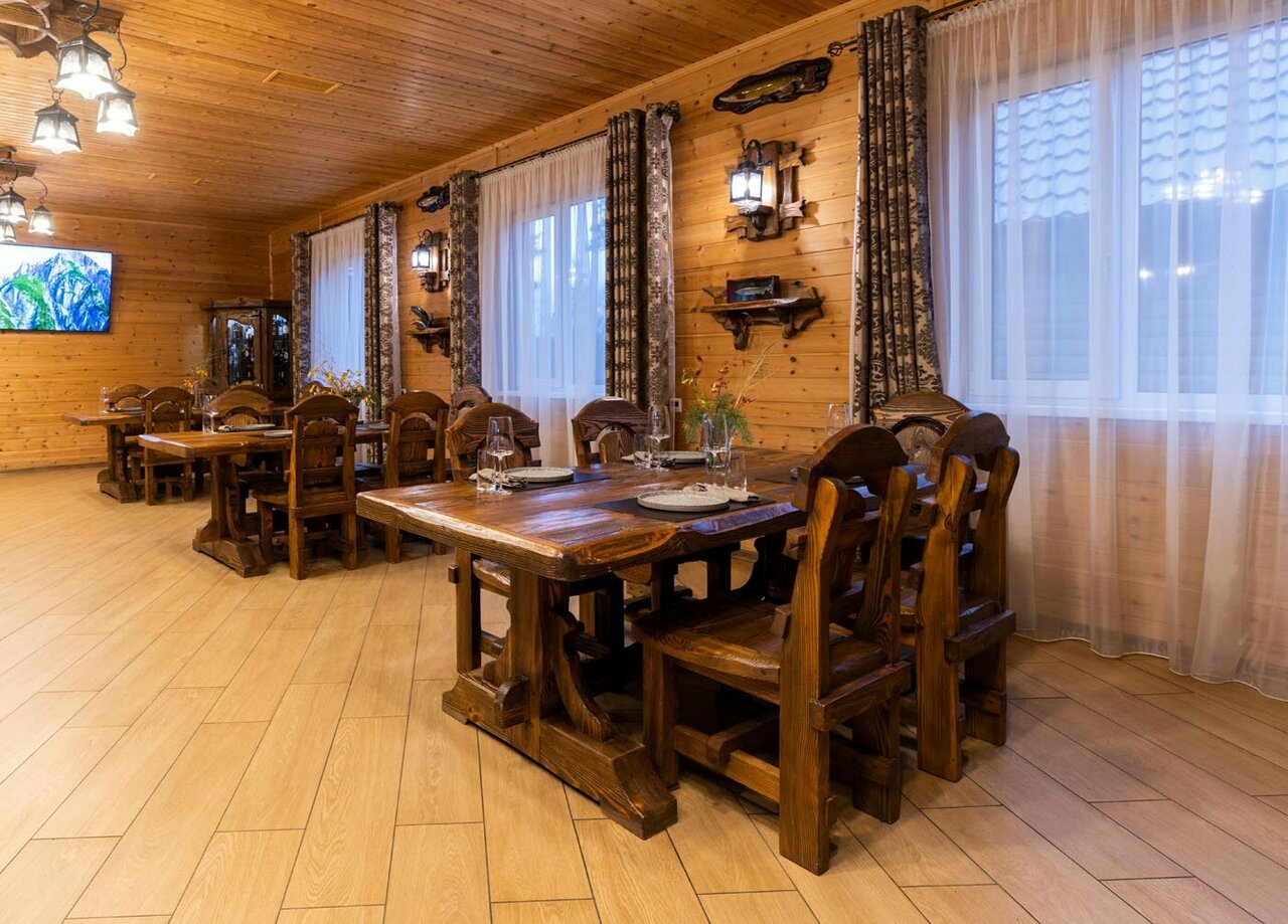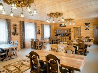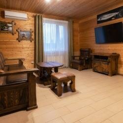Гостиница предлагает размещение в номерах с кондиционером, звукоизоляцией, санузлом, Wi-Fi, телевизором, мини-баром и другими удобствами. Для гостей доступны: — Питание: ресторан, кафе, бар, завтрак, доставка еды в номер. — Отдых: крытый бассейн, сауна, баня, массаж, СПА, рыбалка, охота, прокат лыж и снегоходов. — Развлечения: дискотека, караоке, детский клуб, игровая комната, терраса с камином. — Услуги: трансфер (платный), парковка, прачечная, конференц-зал, заказ экскурсий.