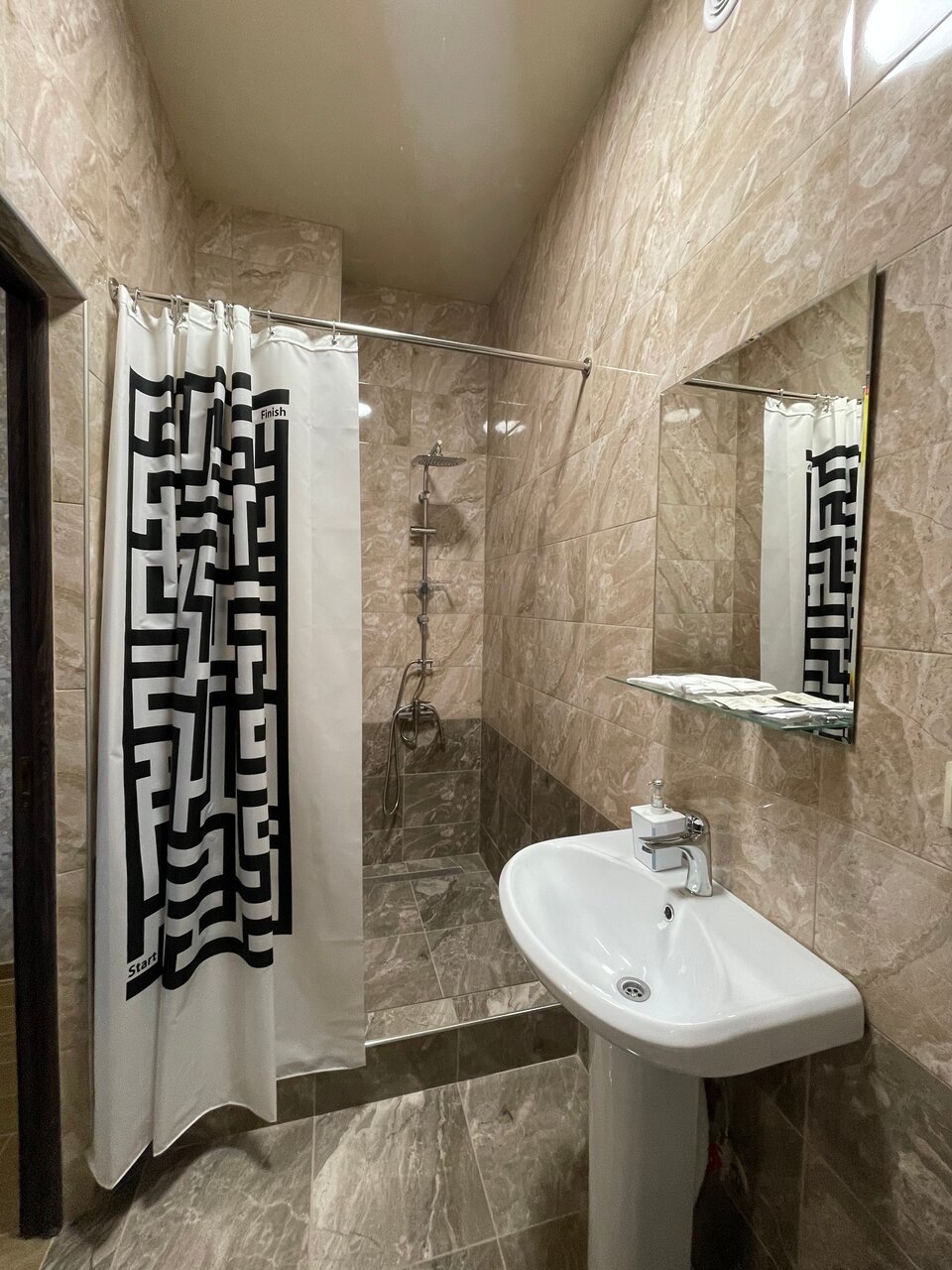 Очень выручил по дороге к морю. Чисто аккуратно, горячая вода, чайник, полотенца шампунь всё необходимое есть. Единственное напрягло то, что не известно ли сдают номера для любовных похождений!? Но человек кто встретил нас на данный вопрос заверил, что не здают номера для данных мероприятий