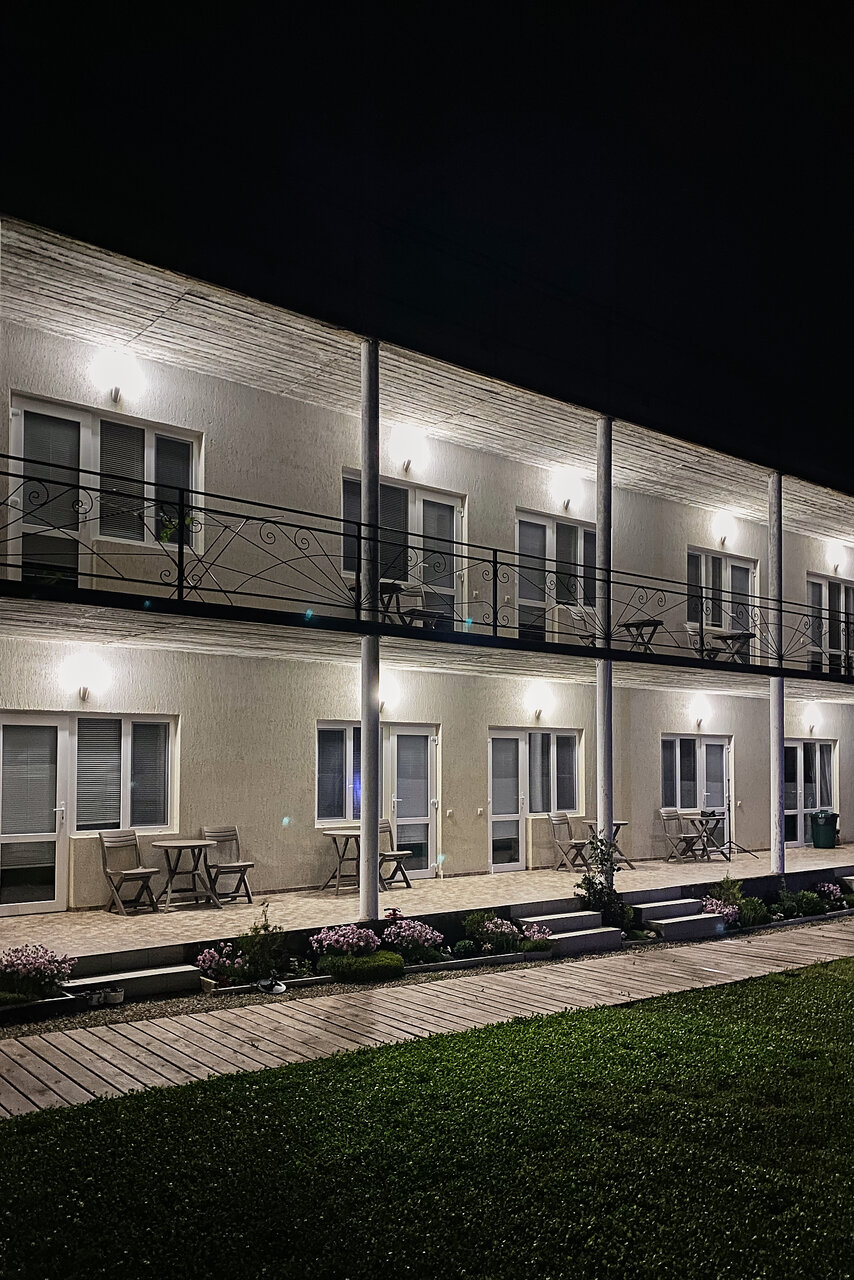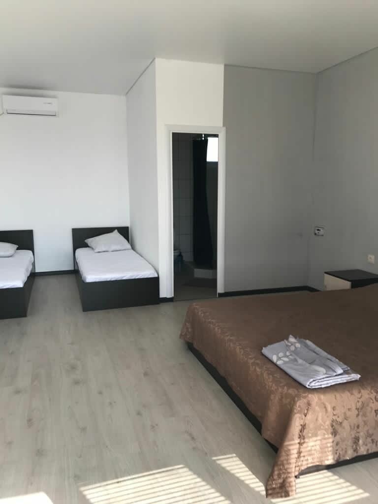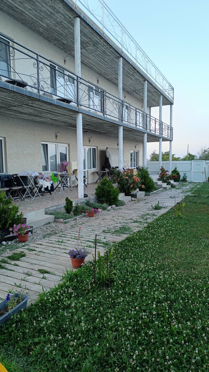 Отличное место, комфортабельная гостиница, все удобства, очень чисто. Внутри территории мангальная зона, две беседки, зона отдыха, красивый газон, цветы, дорожки. Есть большая кухня, можно готовить. Для любителей нешумных мест. Очень доброжелательные хозяева. Море — пляж практически всегда пустой, чистейшая теплая вода! Лучше место!!! Фото смотрите на сайте, всё соответствует!