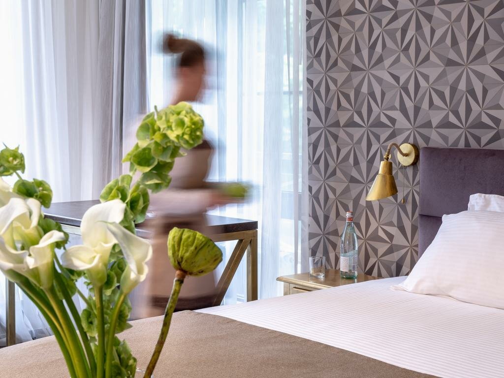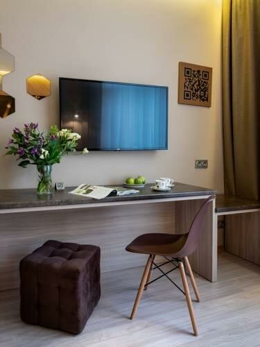 - Современный и стильный интерьер.; СПА-процедуры в подарок (бассейн, хамам, сауна).; Скидки в ближайших ресторанах.; Наличие всех необходимых удобств в номере (утюг, фен, холодильник и др.).; Внимательный и готовый помочь персонал.