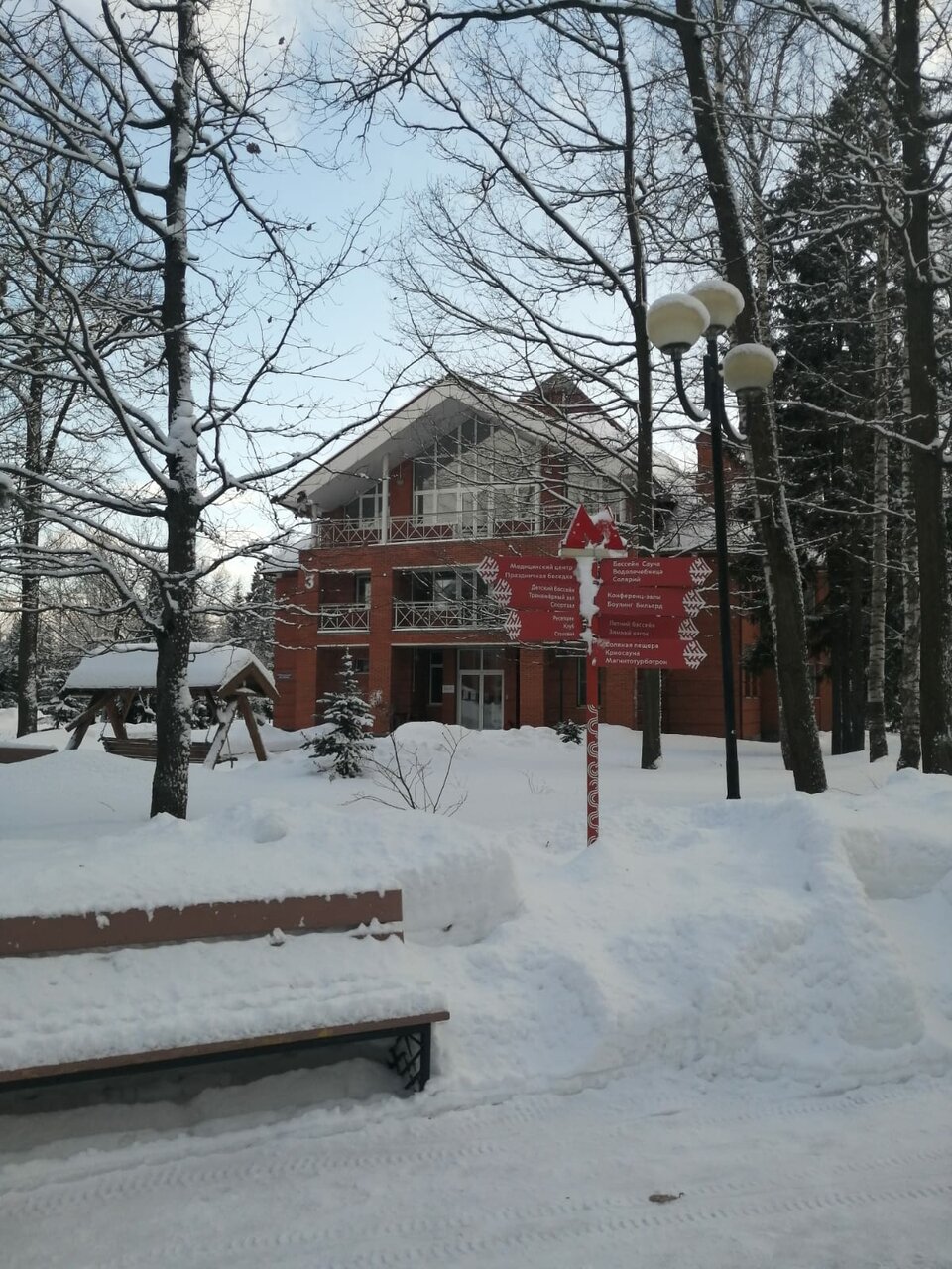 Добрый день всем. Я отдыхала с 14 по 19 февраля. Плюсы: тихо, красивый лесок, чистые тёплые номера, доброжелательный и приветливый персонал. Минусы: съедобная, но невкусная еда, в столовой явно не хватает детского уголка, из-за чего дети, которым скучно бегают между столами (это опасно, особенно если несёшь чашку горячего чая). Из столовой я бы еще убрала страшенные пластмассовые и бумажные цветы, а также заменила дребезжащие и грохочущие тележки, которые ездят каждые 2 минуты рядом и напрочь отбивают аппетит. В бассейне лично для меня не хватило разделителей на дорожки. Любители плавать по диагонали и поперёк периодически раздражали. В хаммаме иногда был затхлый запах. Что можно было бы еще сделать из ‘дешево и сердито’? Например, залить горку, в столовой продавать яблоки, морковку, сухарики для оленя. Кормить нельзя, но все равно кормят))) пусть хоть чем-нибудь не вредным. А так в целом неплохо. Летом наверное вообще замечательно. Может быть приеду еще. Спасибо