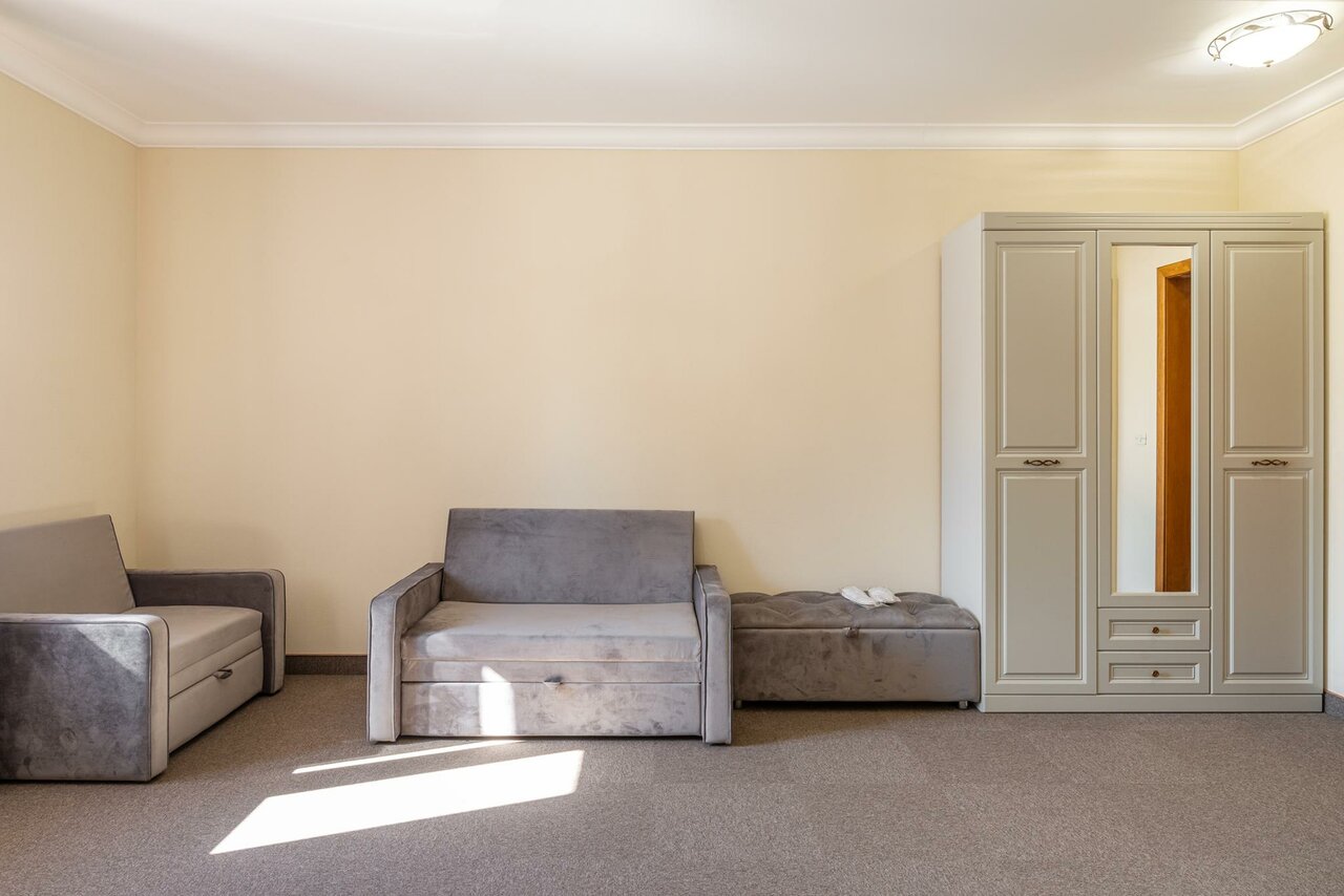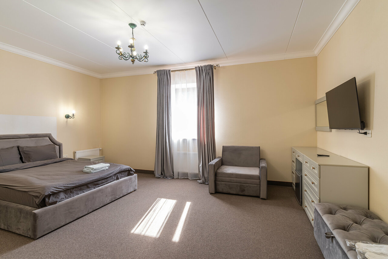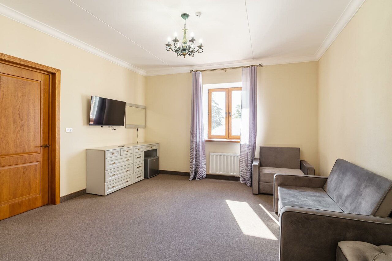 Просторный номер. Все чисто и аккуратно. Очень большой плюс, наличие своей закрытой парковки. Всем рекомендую. Ценник демократичный!