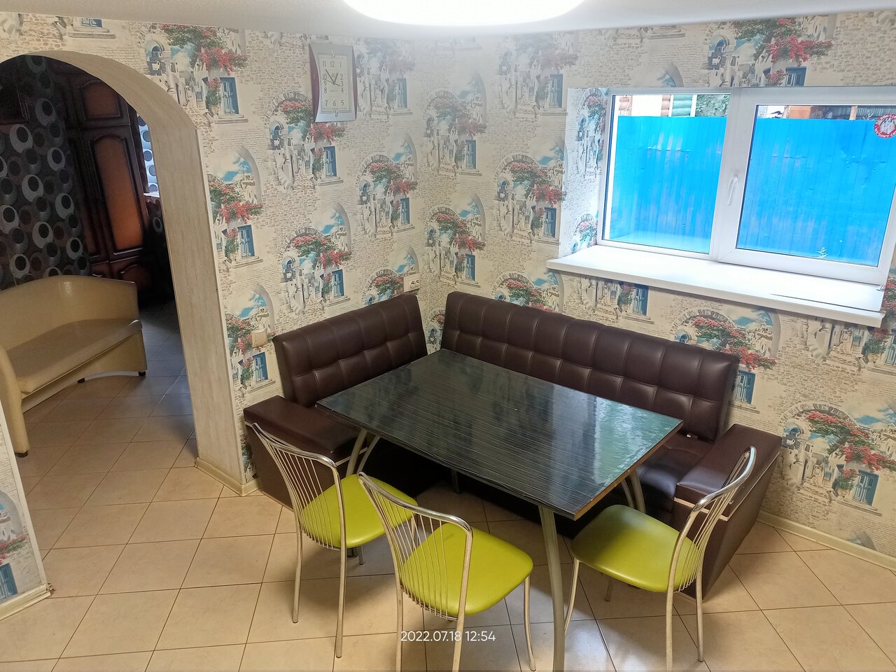 Вместительный, 2спальные комнаты с четырьмя кроватями,хозяева очень гостеприимные, на улице мангальчик, правда уже немного прогоревший стол, две лавки позонтом, один был минус это то что на улице в мангальной зоне не было света, в остальном очень даже хорошее место для отдыха, корпоратива.