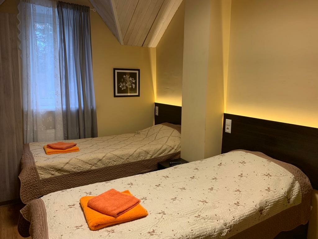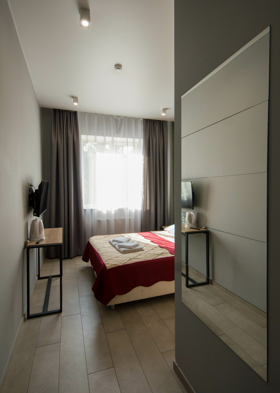 Сама гостиница приятная, номер уютный, персонал отзывчивый, молодцы, что регистрируют по документам (и взрослых и детей), с этим строго. Есть и своя кухня, только на счет завтрака/обеда/ужина нужно договариваться заранее. Главный плюс — это местность. Расположена гостиница в дачном (или котеджном) поселке, вокруг 30-метровые ели, сосны, березы. Воздух прелесть. Инфраструктура не столичная, конечно, но все рядом. Минимаркет в этом же здании, рядышком пиццерия с очень вкусной пиццей. В целом приятные впечатления, по цене достаточно хороший диапазон.