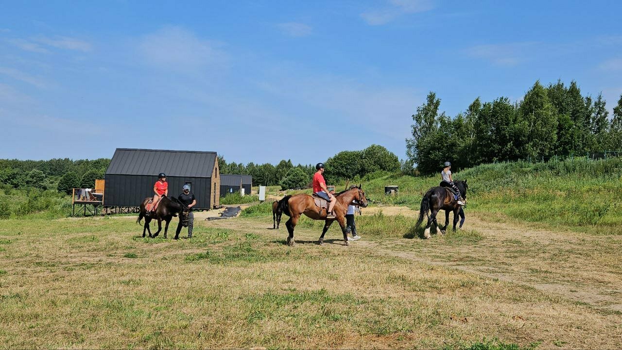 Отдыхали компанией друзей и не пожалели. Приехали на выходные, чтобы отдохнуть от городской суеты и насладиться природой. Здесь для этого есть все! Мы катались на сапах, катались на лошадях, играли в бадминтон и волейбол (также есть велосипеды, но мы попросту не успели, так как было очень насыщенно). Нас даже прокатили на тракторе! Питание просто 10/10. Были включены завтраки (каша, панкейки и омлет). Обеды/ужины оплачиваются отдельно, и это того стоит. Повар бесподобен, к панкейкам подаёт какой-то авторский соус, вкуснее которого я пока не пробовала. Дома новые, ремонт свежий. В каждом доме есть все необходимое для хранения и приготовления еды. Можно приготовить шашлык в мангале на улице. Также нам затопили купель и сауну. В летний вечер идеальное завершение дня после активного отдыха. В общем, приедем сюда ещё раз обязательно!