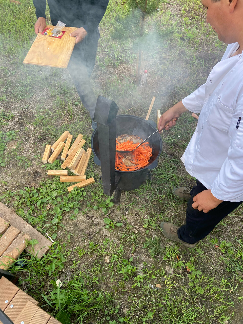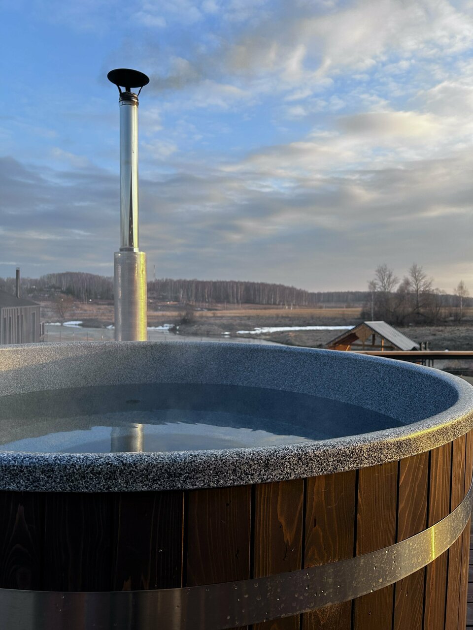 Отдыхали вчетвером с купелью и пловом на костре. Шикарная атмосфера загородной сказки с очень гостеприимными хозяевами и приятными и беседами.