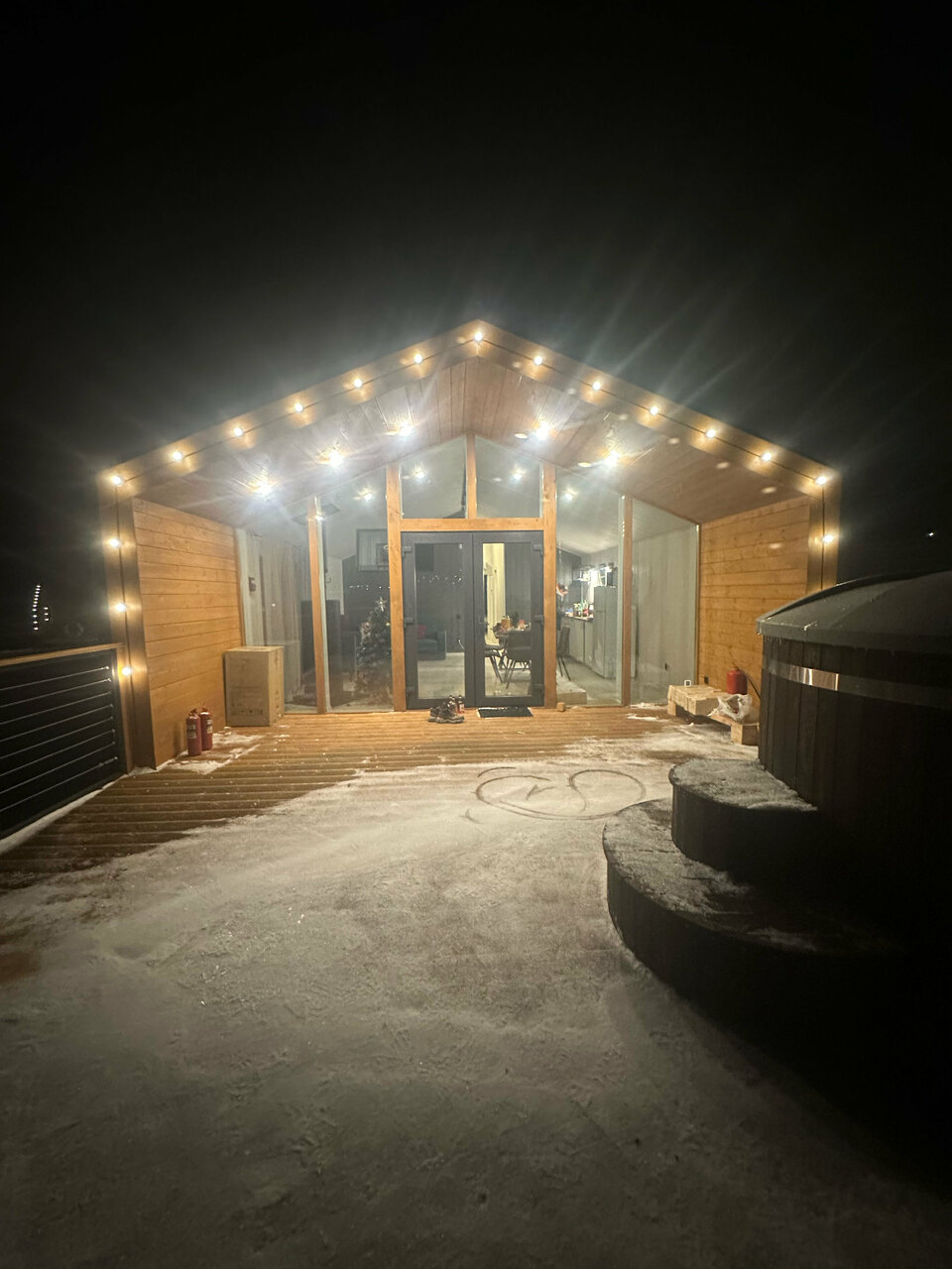 Были на новогодний заезд, семья с 3 детьми. Прежде всего, спасибо за просторный комфортный домик! Редко удаётся таким составом разместиться удобно, а тут отдельная спальня для взрослых, две кровати в мансарде и большой диван в гостиной, все довольны. Продумано много мелочей, домик обустроен как для себя, даже толстый ковёр на полу, очень приятный; просторная ванная, камин. С погодой не повезло, снега не было, ветер, сырость, но все равно настроение новогоднее удалось. Устроили нам и банкет (стол был прекрасный, вкусно, сытно), и деда Мороза, и ведущего с конкурсами и призами. 1 января был Плов с глинтвейном, вечером костёр с маршмеллоу, просмотр фильма. А уличный тёплый бассейн и сауна в холодное время года это просто топ Все вопросы и мелкие просьбы решались молниеносно; очень приятные хозяева, персонал. Хотим вернуться теперь летом и насладиться не только чудесным домиком, но и природой вокруг