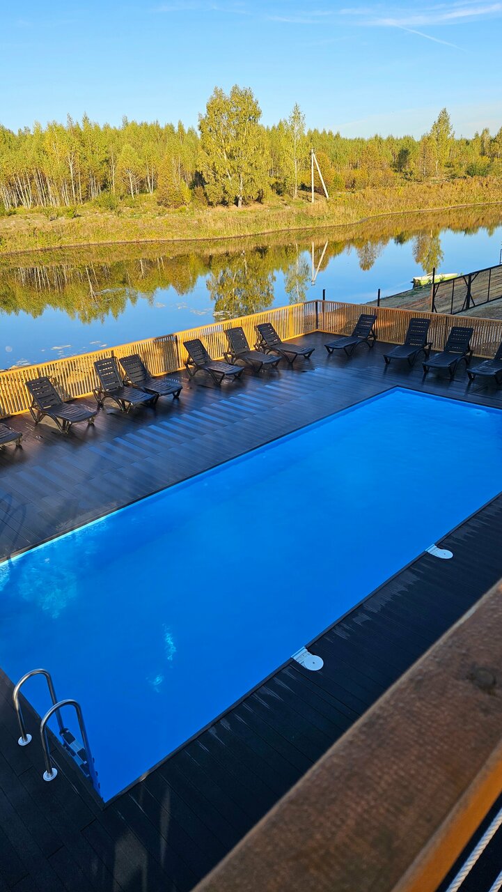 Очень рекомендую! Красиво, чисто, уютно, вкусно. Персонал очень внимательный, заботливый, делает все для комфортного отдыха. Бассейн огонь, теплый чистый) есть мангалы и купели, летом сапы будут. Кролики на территории, конюшня. В общем нам понравилось!