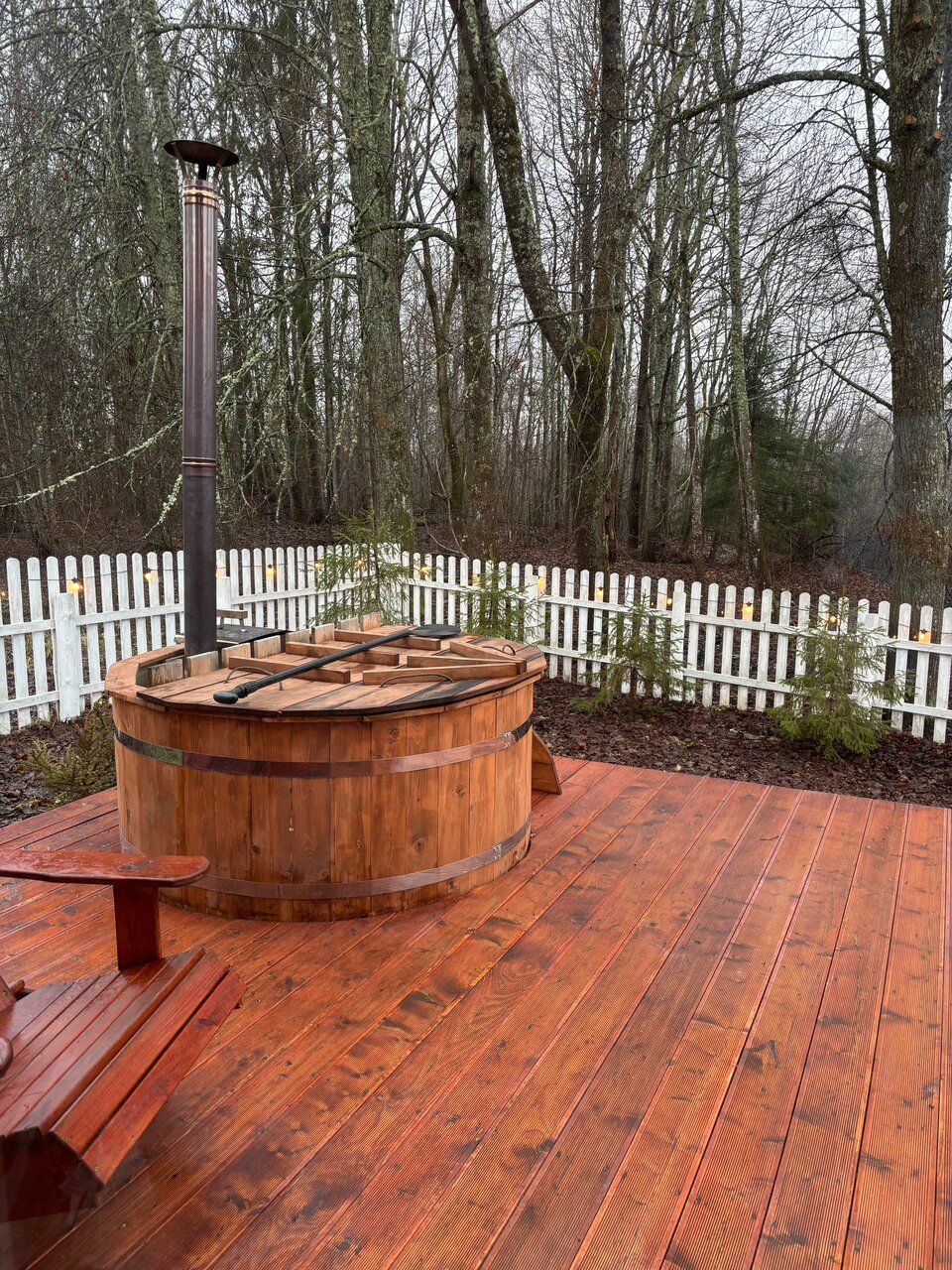 Идеальное место для спокойного отдыха и перезагрузки. Все детали в домике продуманы, даже не ожидали, что будет так комфортно. Удобная кухня с красивой посудой, приятный интерьер. Тишина. Винил. Уютная терраса. Мангал. Свежий воздух. И, вишенка на торте- горячая купель на дровах, которая чудесно зафиналила наш вечер. На улице легкий морозец — вы из горячей купели заходите в теплый домик с камином и засыпаете на вполне удобной кровати на белоснежном белье , вот он настоящий релакс! Спасибо за гостеприимство и чистоту !! Мы обязательно вернемся!