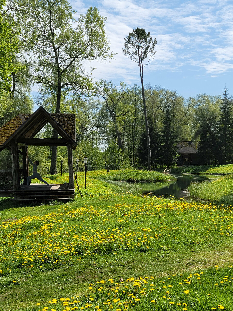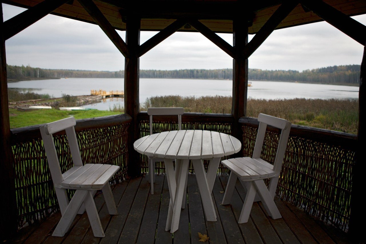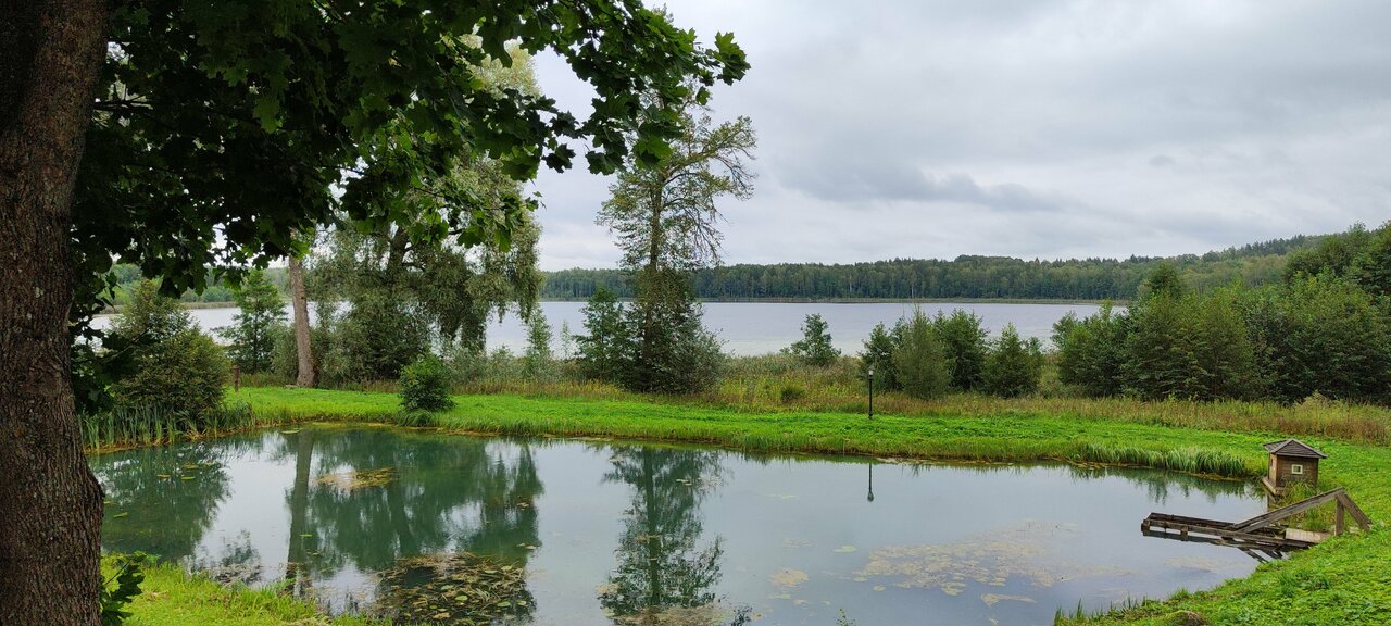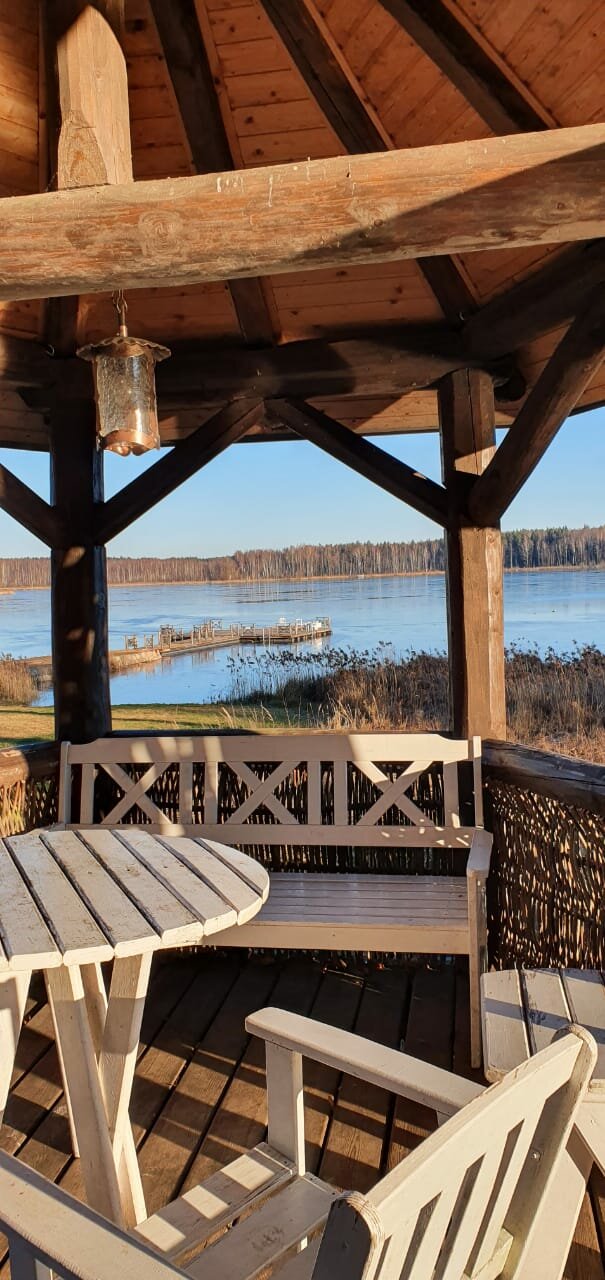 Отдыхали в июне 2021 второй раз и ещё вернёмся. Выход из дома над озером организован на деревянный навес или просторный балкон над прудом и видом на озеро. Можно посидеть в качающихся креслах в одиночку или с кампанией выпить шампанское, поиграть в настольные игры. В 200 метрах озеро, вода чистая и мягкая, цветут кувшинки. Номера просторные, уютные и чистые. Есть хороший фен. Утюг и гладильная доска на втором этаже. Вода на этажах в кулере. Завтрак разнообразный, вкусная кухня и особенно выпечка. Обязательно загляните в Амбар под дубами — это отдельная песня Территория — это история