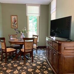 Прекрасный ресторан с отличными блюдами. Оформление в стиле 18-19 века. Романтично. В номерах не был. Красивое место,озеро,лес, площадки для различных мероприятий,рыбалка…
