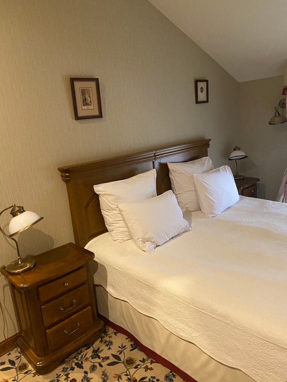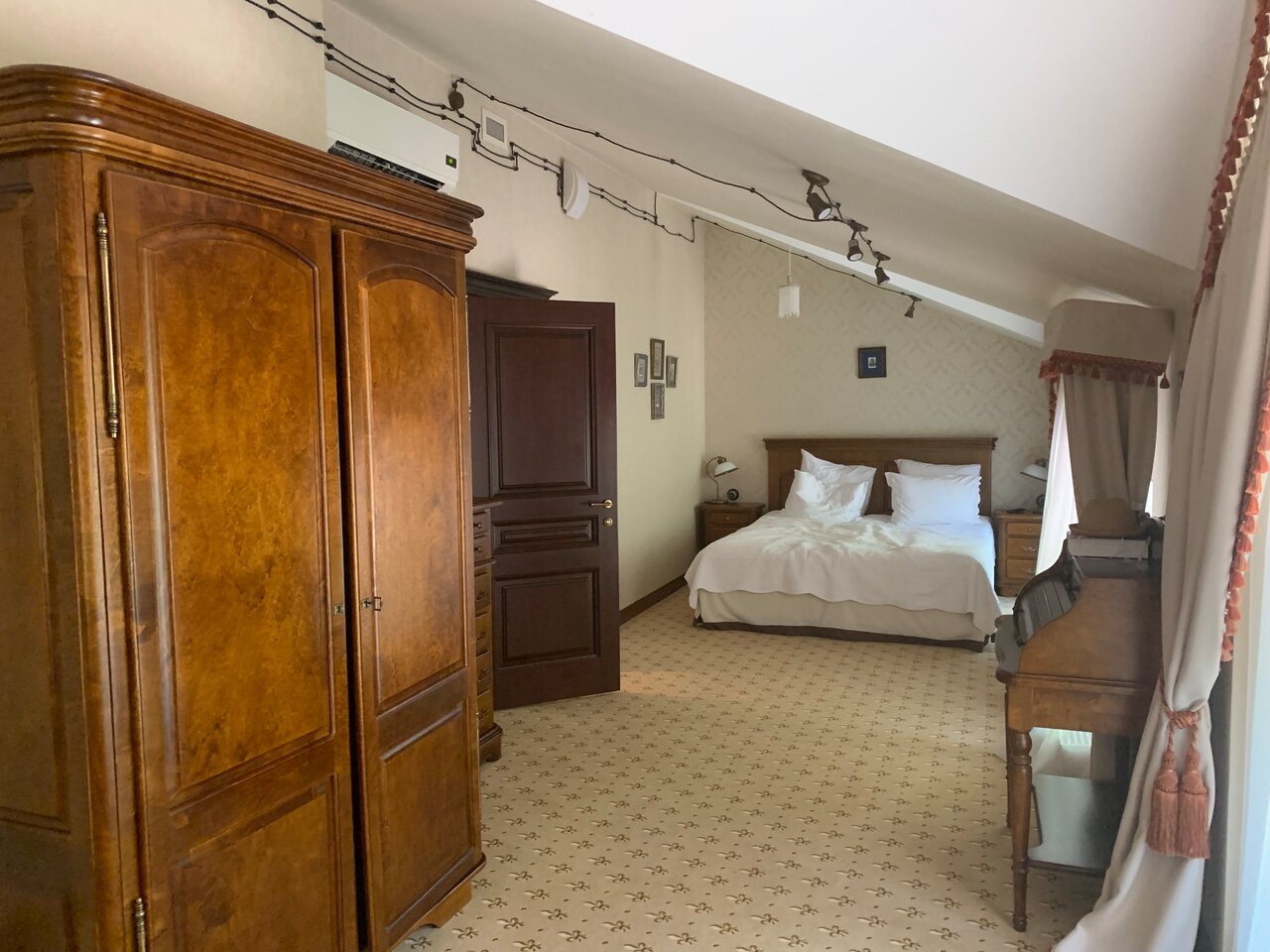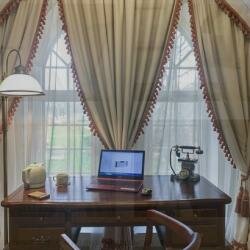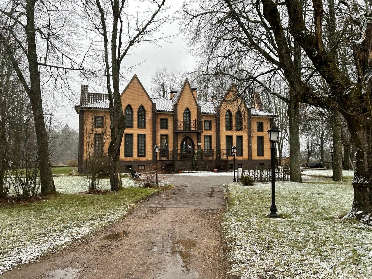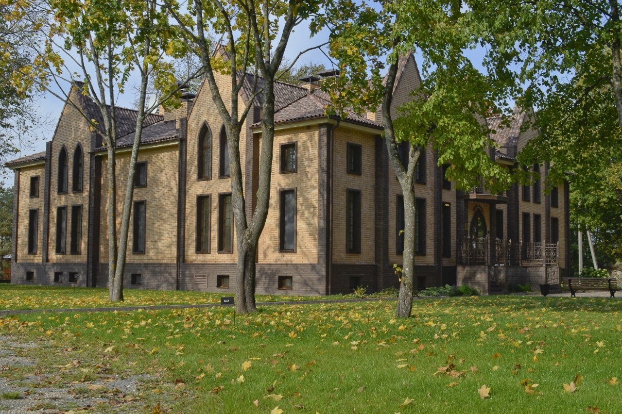 Это очень романтичное место с современным комфортом. Летом, наверное, сказка, но и в начале ноября осталось хорошее впечатление. Многое предстоит восстановить из руин. Явно болеют деревья старинного парка (но это везде в Пушгорах так). Есть моменты, которые немыслимы в даже гораздо более скромных отелях Франции: когда входишь с улицы ресепшн продолжает читать книгу; мы привыкли, что здороваются… Карта вин дороговата. По бокалом приемлемо, а на бутылку не замахнулись