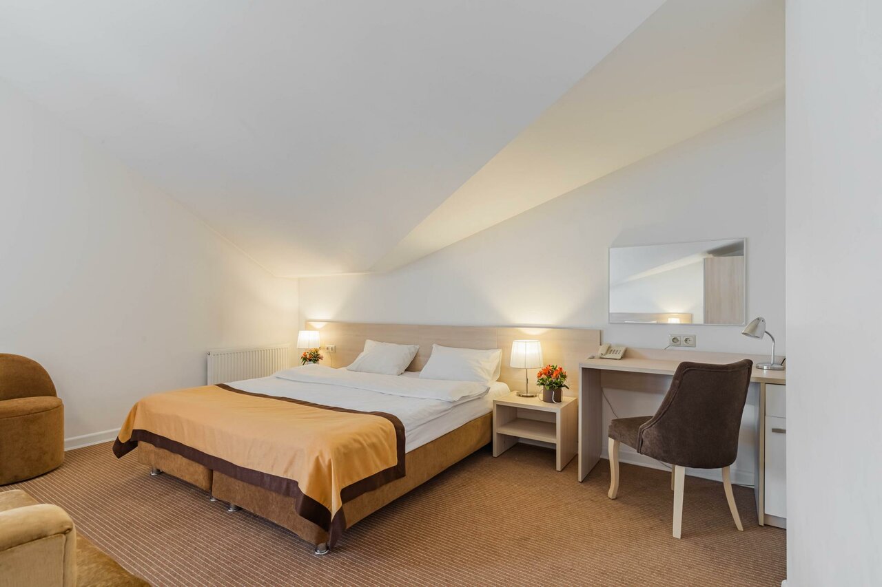Гостям доступны номера с кондиционером, Wi-Fi, мини-баром, телевизором и санузлом. На территории отеля — крытый бассейн, тренажёрный зал, сауна, хаммам, ресторан, кафе и бар. Для деловых поездок предусмотрен бизнес-центр с переговорной и конференц-залом.