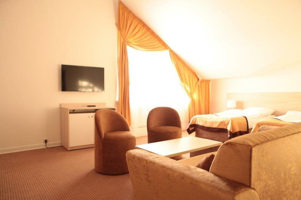 Хороший отель-ресторан, уютные номера, завтраки тоже достойные) но территория маленькая, и, поскольку отель находится рядом с дорогой, слышен шум машин( а так, очень даже приличное место! При отеле есть свой небольшой пляж на реке Вейна.