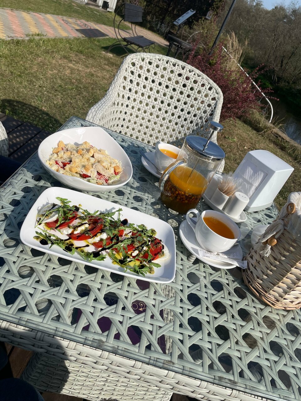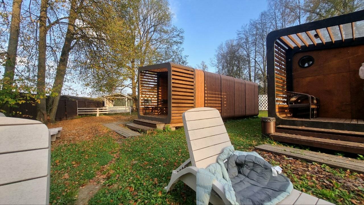 Очень неоднозначные впечатления. С одной стороны — красивая, стильная территория и приветливые и отзывчивые администраторы. С другой — совершенно непродуманная ситуация с питанием.На сайте написано о кафе, мы на него рассчитывали, заранее изучили меню. На деле из меню доступно 2-3 блюда (размороженные сырники, пельмени, яичница). Абсолютно убил отказ официанта налить стакан воды (даже просто кипятка), чтобы муж смог запить лекарство. Впервые сталкиваюсь с таким где бы то ни было. Это при том, что в кафе вода продавалась только газированная. В общем и целом красиво, но как-то без души. Больше не приедем, рекомендовать друзьям тоже будем вряд ли.
