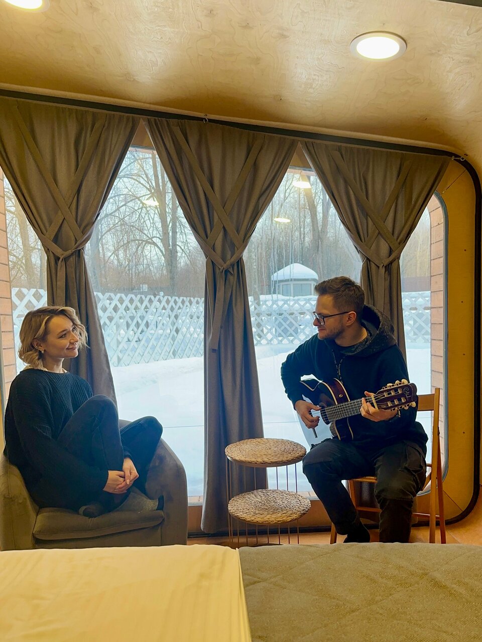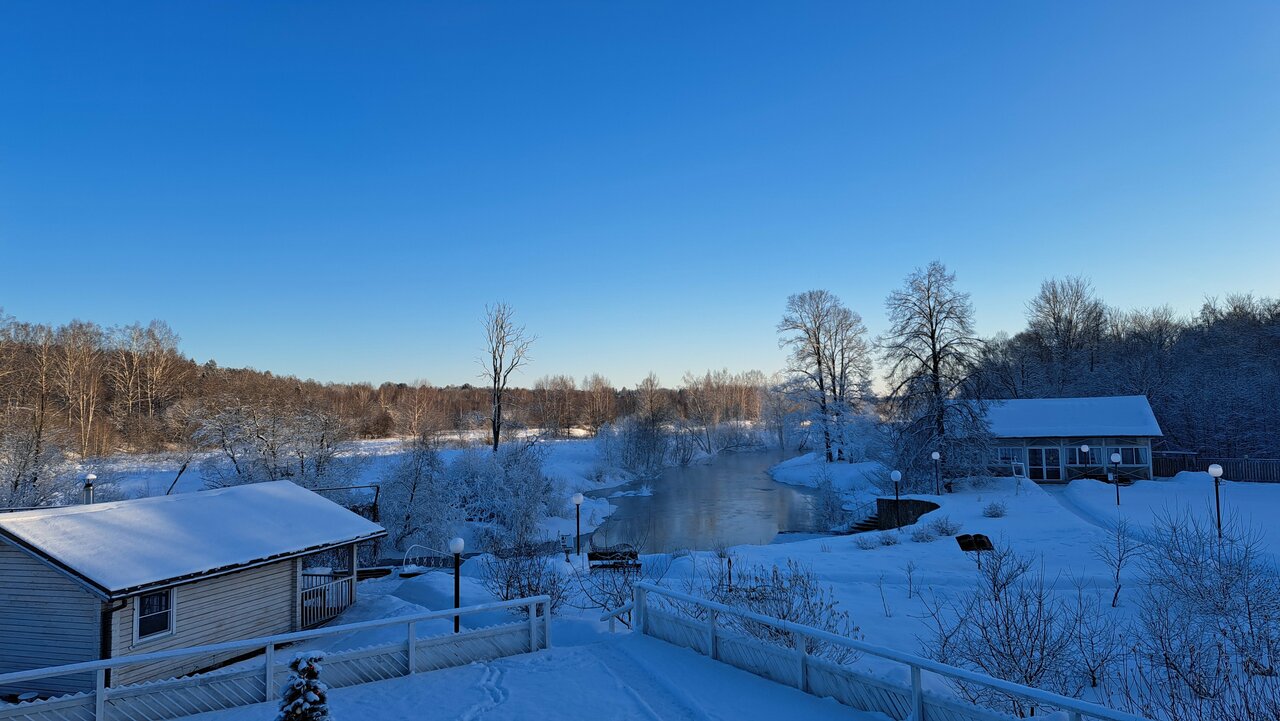 Мы остались в феврале на одну ночь в будни за 3500 в маленьком номере на втором этаже. Чисто, аккуратно, из минусов только плохо уходила вода в душе. Приятная территория, покатались с горки на ватрушках, поиграли в настольный теннис. Изгиб реки завораживает Ночной охранник действительно чудо приятный человек, все подсказал и вечером и утром. Ели в бургерной напротив. За эти деньги остались довольны.