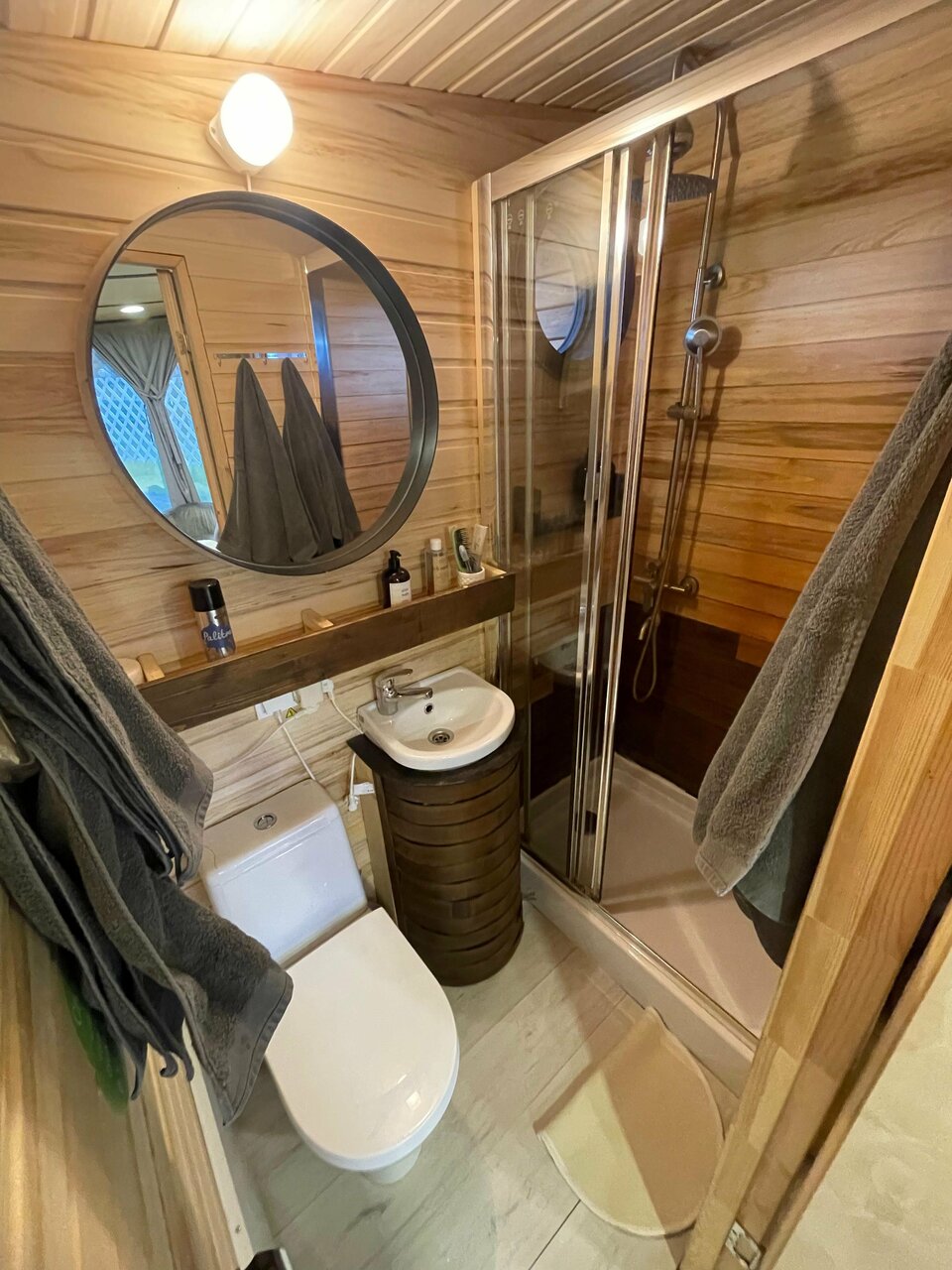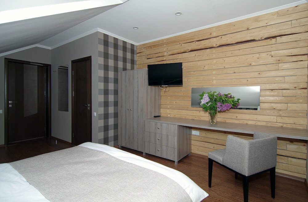 Приезжали отдыхать с подругами и хорьком в двухэтажный номер. Номер чистый, аккуратный, есть куллер и колонка Алиса за что отдельный плюсик. В номере есть чашки и чай, небольшой холодильник. Все условия для комфортного проживания. Из минусов: горячая вода в душе, даже вывернутая полностью недостаточно горячая. На первом этаже не хватает элементарных прикроватных тумбочек с ящиками и маленького шкафчика, хотя, если сдвинуть кровать — места достаточно. Из-за этого приходилось подниматься наверх убрать или взять вещи из шкафа. Очень вежливый гостеприимный персонал. Рады животным, даже такому как хорек! Массаж, баня, джакузи, лошади — все прекрасно, нас подвела лишь погода. В кафе отличное меню. Особенно вкусный завтрак из блинчиков со сгущенкой, советую попробовать 😉 В кафе есть настольные игры, которые можно взять в номер. Сама территория небольшая, но ухоженная. Для любителей тишины и животных очень рекомендую это место. Даже хорю там понравилось)