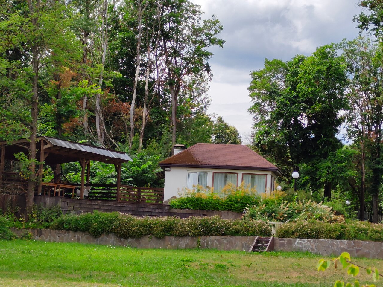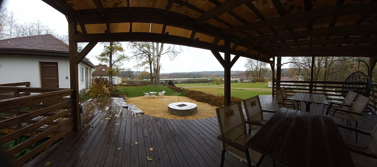Хорошее место. Всего 7 номеров, соответственно мало людей вокруг, тихо. Можно с собакой . Единственный минус — огромное количество лесных ос, укусили несколько раз, лезут в еду и напитки.
