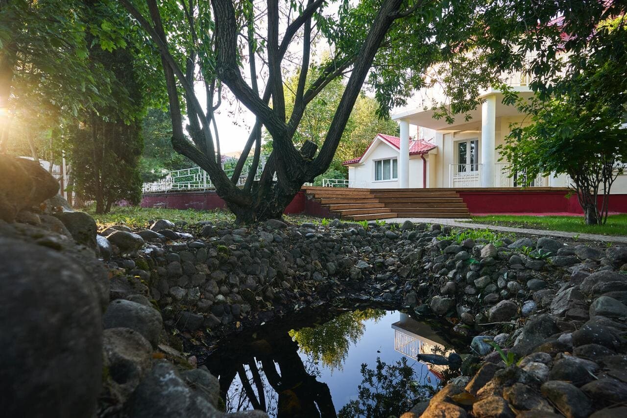 - Адекватный владелец/хозяйка.; Наличие сауны и купели.; Возможность разделения зон (например, два независимых караоке).; Просторные помещения.; Уютная территория.