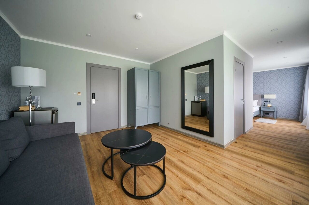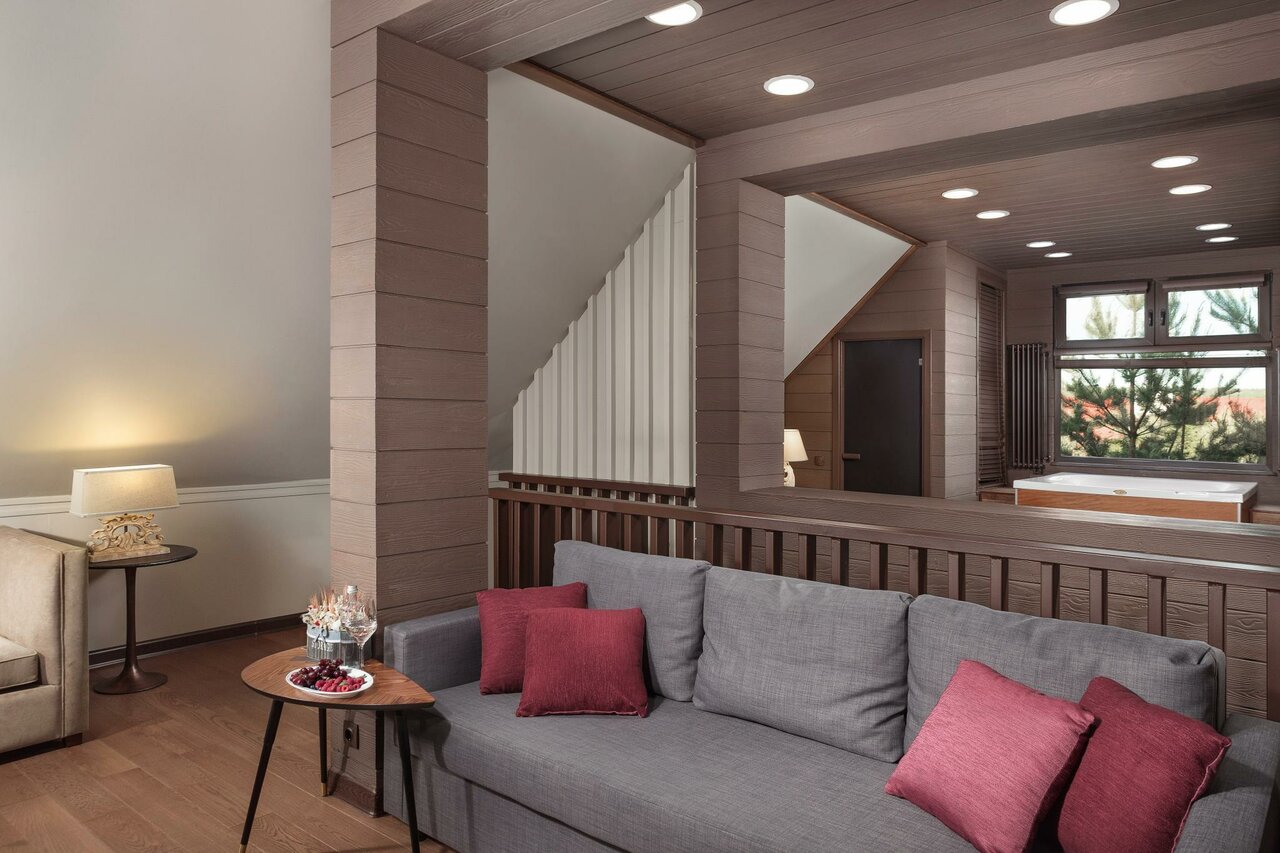 Коттедж Family Suite площадью 54 кв. м обустроен двумя спальнями и просторной гостиной, что позволяет комфортно разместиться семье или компании до 3-х человек, так же в этом коттедже возможно дополнительное место для ребенка с 3-12 лет за дополнит...