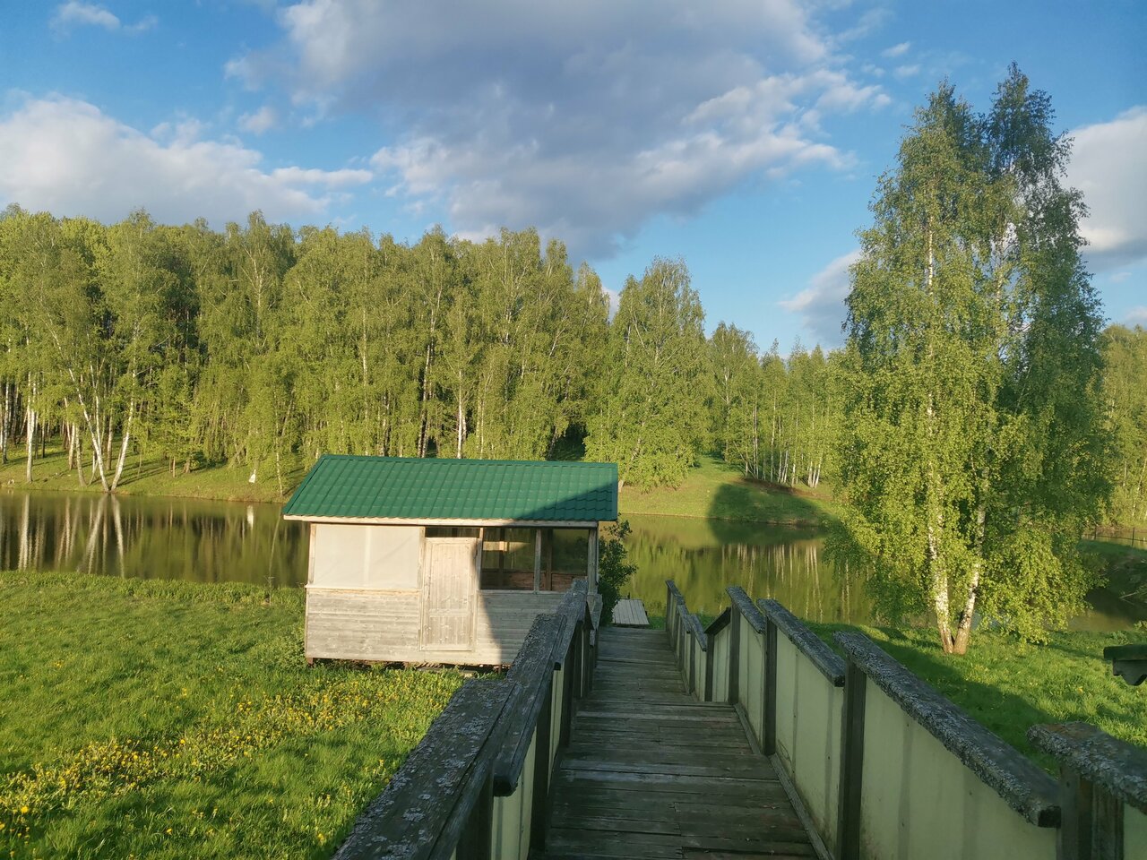 Хорошее место для отдыха от городской суеты: лес, прудики, полное уединение с природой. Приветливый и ответственный персонал. Администратор был всегда на связи, повар на кухне очень дружелюбная и приятная женщина, кормила очень вкусно. Видно, что стараются и следят за территорией, чтобы все было чисто и аккуратно. Дом в деревенском стиле, рядом с домом есть мангал. Отличное соотношение цены/качества, так как это не отдых люкс, соответственно, и цена не завышена. Провели там два дня, шумных компаний не было, детям есть где погулять: есть детская площадка и футбольное поле. Нам тут очень понравилось