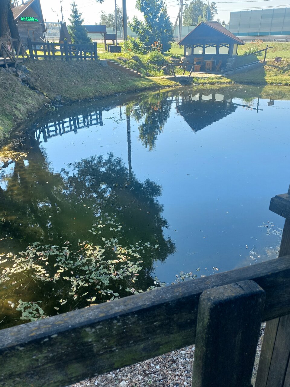Отличное место! Мы ночевали в домике на втором этаже. Свежий дизайнерский ремонт, все удобства, на первом этаже кухня. Территория тоже красивая, небольшой прудик, мосточек. Если бы этот комплекс не был у трассы, то было бы ещё лучше.