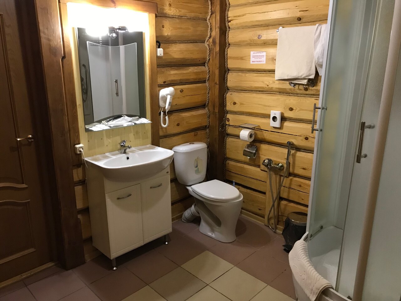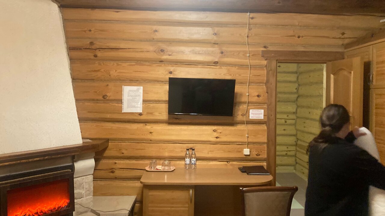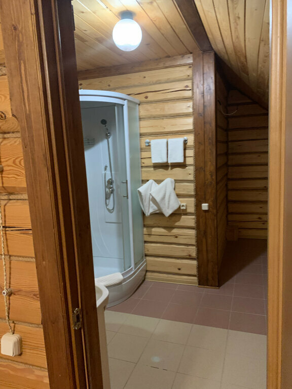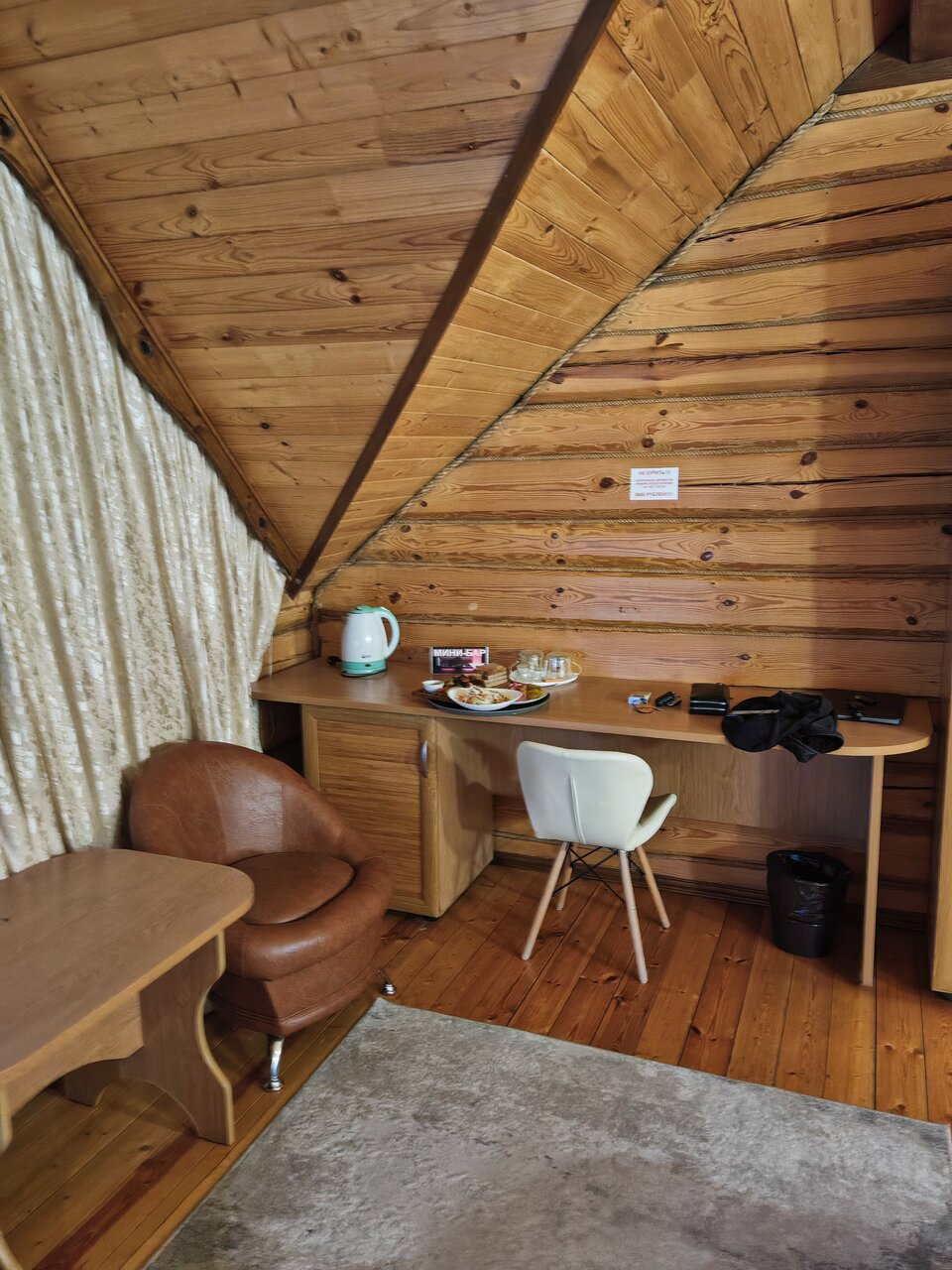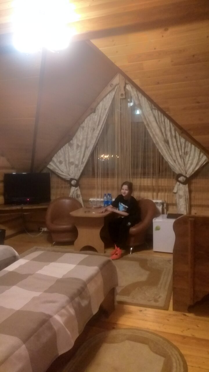 Довольно таки отличное место, я вам скажу. Остановились переночевать после долгой дороги. Факт увиденного превзошел все мои ожидания(а ожидал я тусклую ночлежку), так как нас поселили в прекрасный коттедж выполненный из деревянного сруба, внутри которого был камин, сауна, большая кровать. И площадь комнат очень даже просторная. Так что, молодцы. Единственный момент чуть негатива — в мини баре напитки безалкогольные и шоколад платно, Но об этом администратор умолчал. Неприятный момент