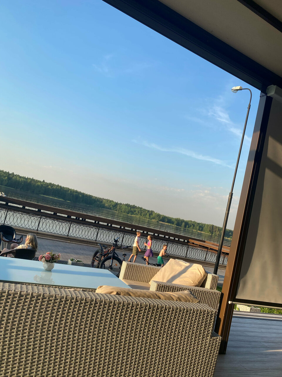 Очень хорошо отдохнули. Чудесное место! Все время можно наблюдать за большими теплоходами. Очень вкусная кухня. Тихое и красивое место. Минусов нет.