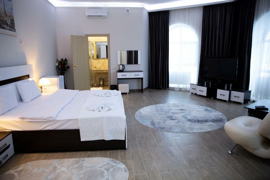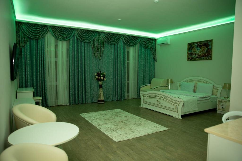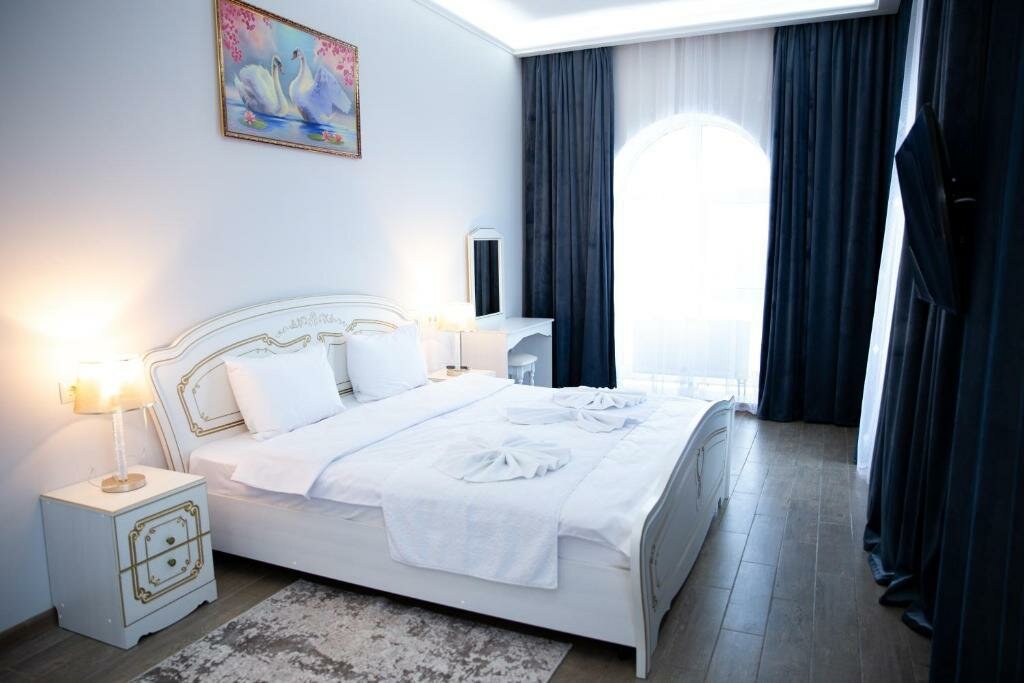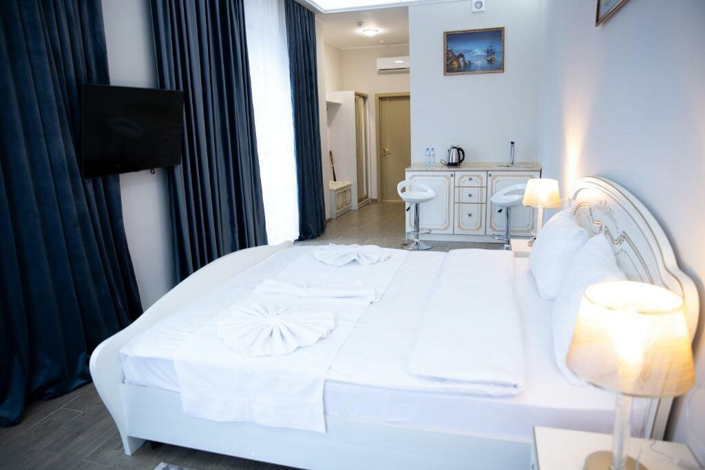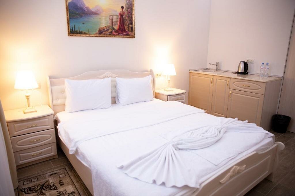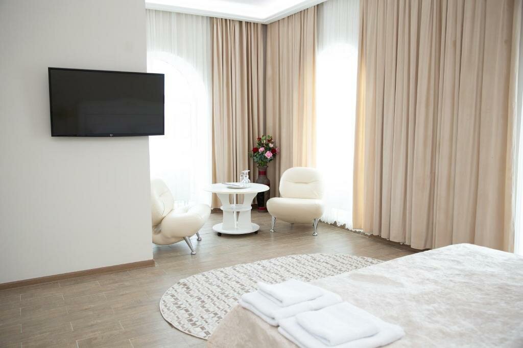 Брали номер супер люкс. Итак, по пунктам. 1. Номер большой, нет, он ОГРОМНЫЙ, места много и не тесно 2. Чисто. Везде, в комнате, в ванной, белье, халаты и т.д. 3. В номере есть что-то типа ‘мини кухни’ чайник, небольшой набор посуды, стаканы и т.д. 4. Удобная и большая кровать, вопросов нет. 5. 2 бутылки воды по 0,5 включены в стоимость. 5. В ванной есть джакузи, ну тут сами понимаете, только это не джакузи а просто ванная, там нету гидромассажа и т.д. 6. Есть ресторан, можно заказать в номер, цены НОРМАЛЬНЫЕ! Удивили. В общем, видимо отель заточен под уединенный отдых со своим парнероми отлично этому соответствует!