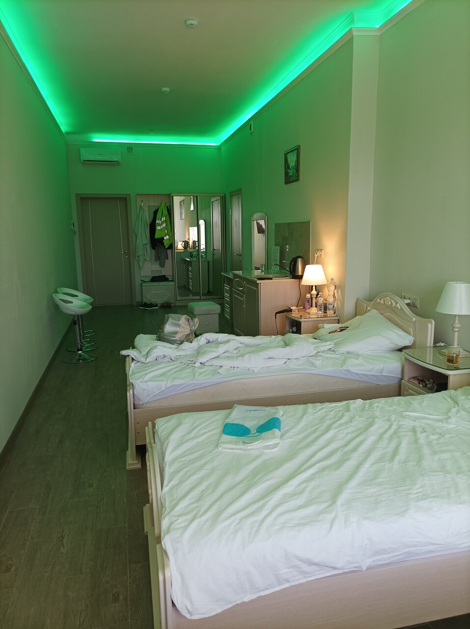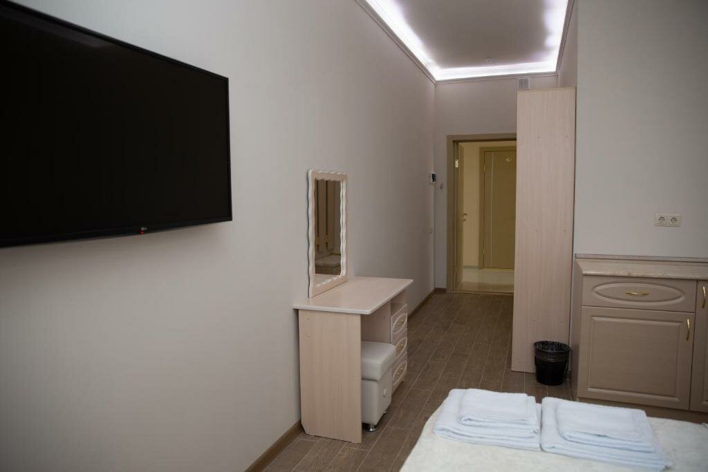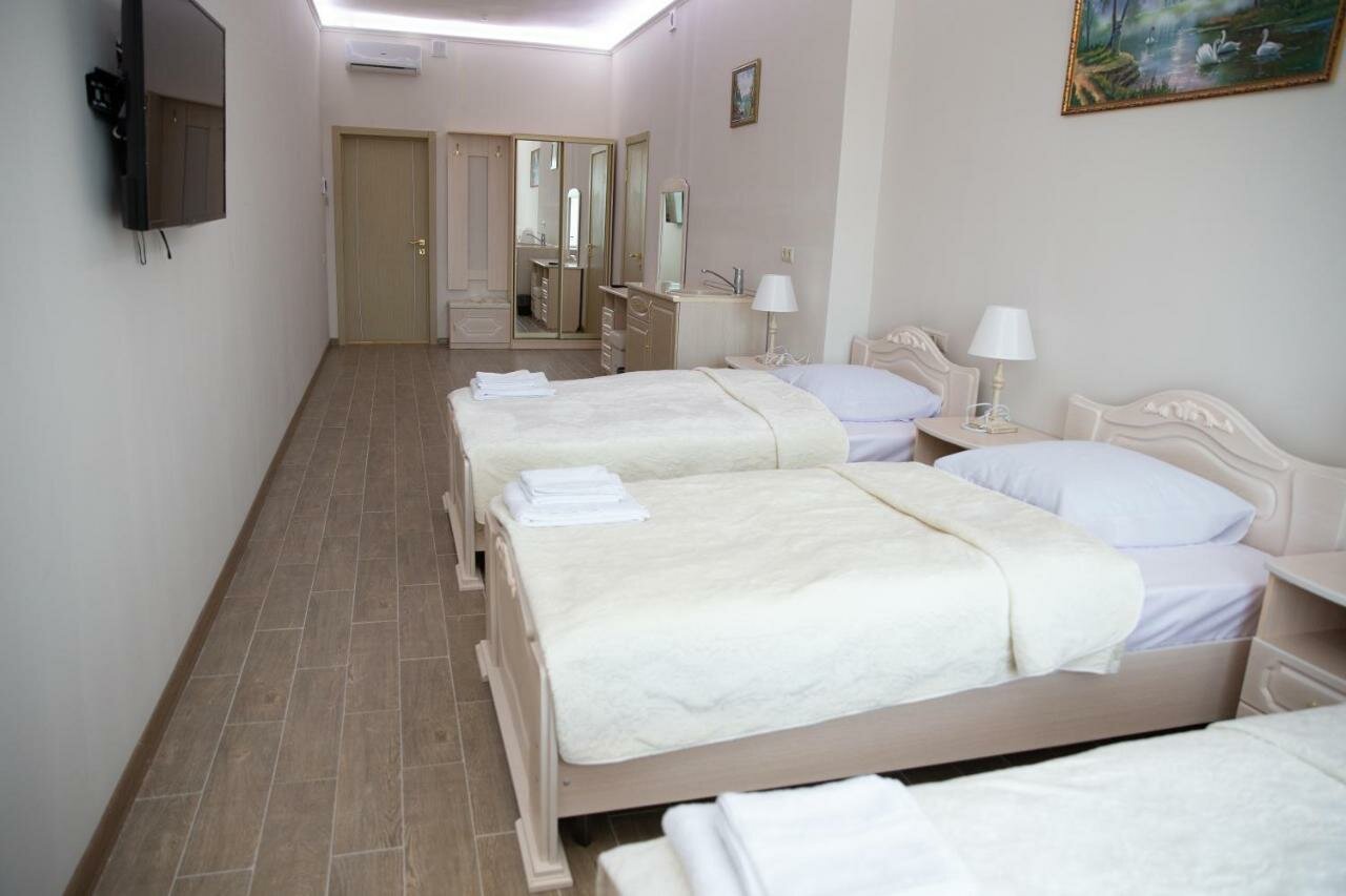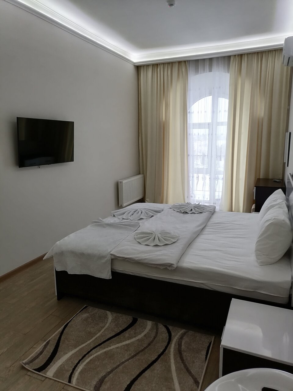 В принципе чисто, но номер не был подготовлен после предыдущих буйных гостей, телевизор разбит, крючки в прихожей сорваны, стены грязные. Ещё не понравилась вода в крана, она у них видимо вообще не подготавливается и не фильтруется, есть посторонний запах и привкус железа. Есть лифт но она в 4х этажном здании только до 3го этажа как то не логично, естественно на 4й этаж пришлось нести тяжёлый чемодан через 3й, тем более уставшие с дороги. И мне кажется нам дали не тот номер, вроде как стандартный хотя мы бронировали расширенный, но мы ведь не знаем какие у них остальные номера, так что лучше уточняйте. Мы разбираться не стали останавливались на одну ночь.