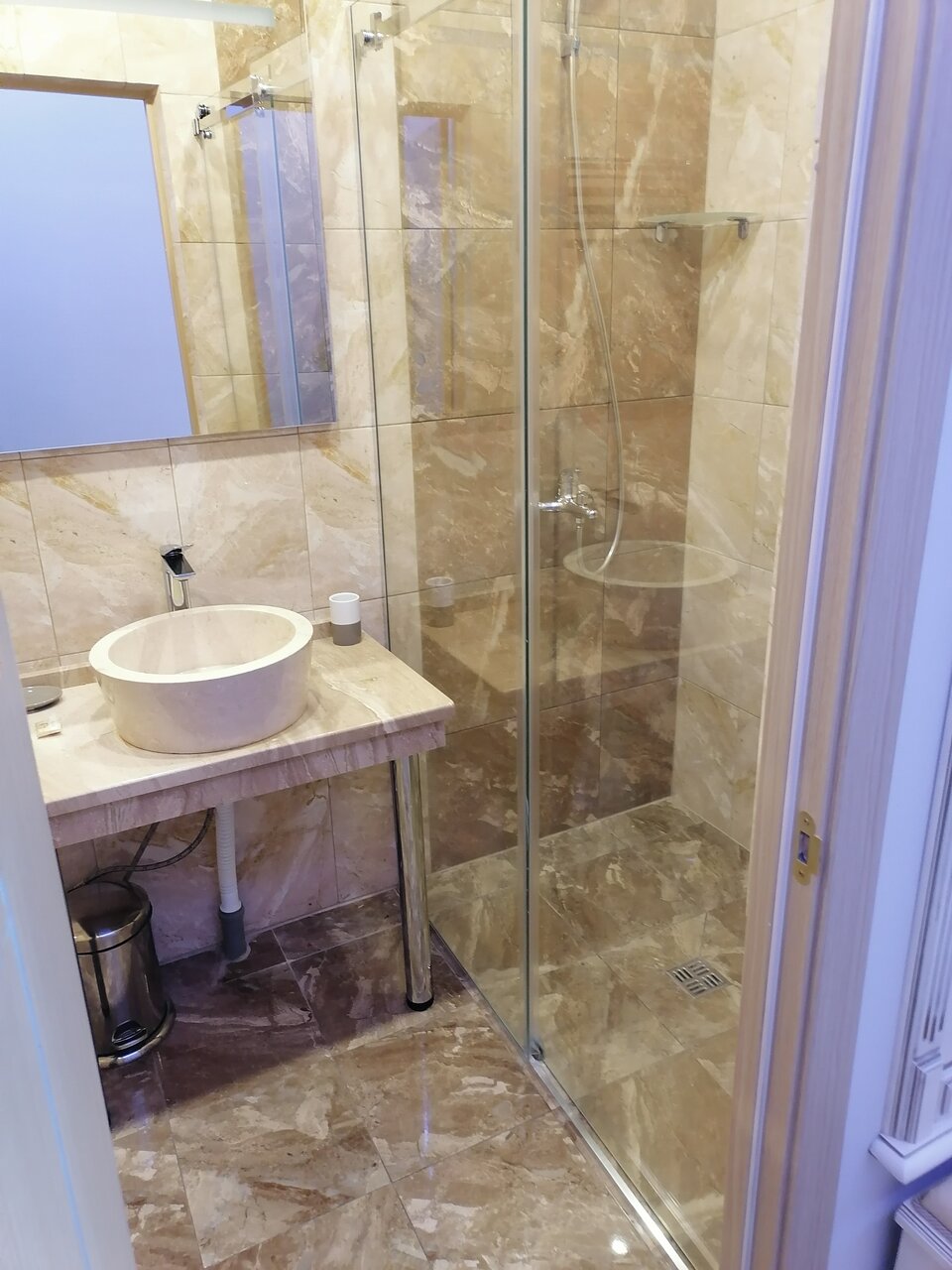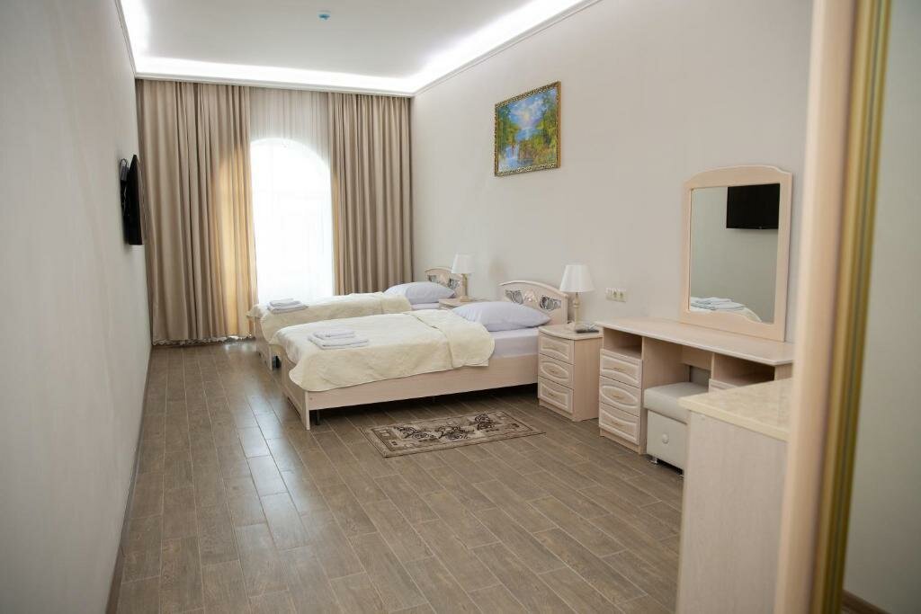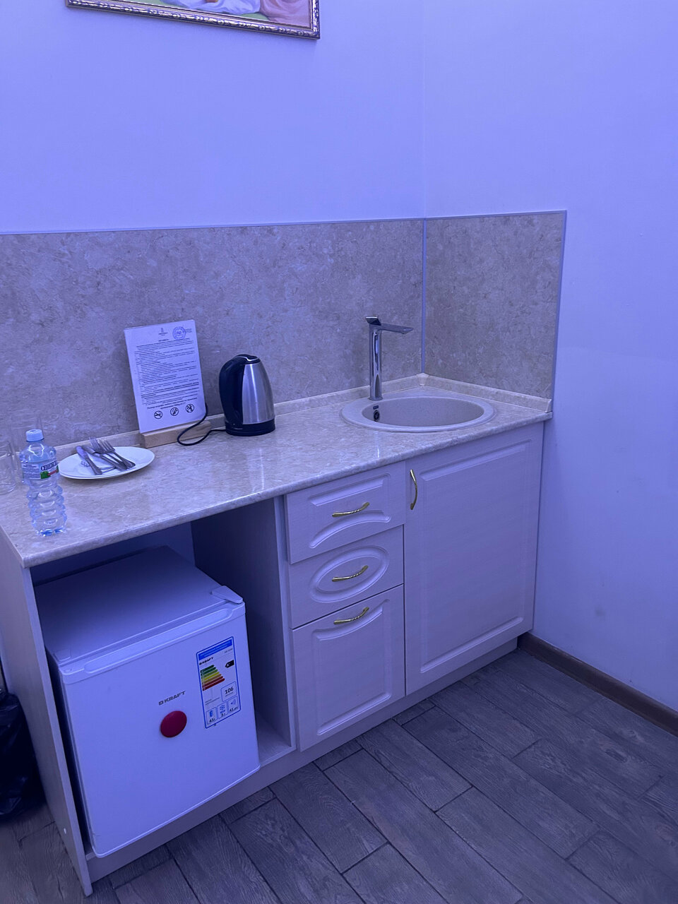 В принципе чисто, но номер не был подготовлен после предыдущих буйных гостей, телевизор разбит, крючки в прихожей сорваны, стены грязные. Ещё не понравилась вода в крана, она у них видимо вообще не подготавливается и не фильтруется, есть посторонний запах и привкус железа. Есть лифт но она в 4х этажном здании только до 3го этажа как то не логично, естественно на 4й этаж пришлось нести тяжёлый чемодан через 3й, тем более уставшие с дороги. И мне кажется нам дали не тот номер, вроде как стандартный хотя мы бронировали расширенный, но мы ведь не знаем какие у них остальные номера, так что лучше уточняйте. Мы разбираться не стали останавливались на одну ночь.