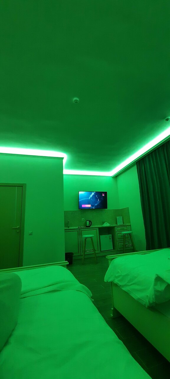 - Неоновая подсветка в номерах (не всем нравится)