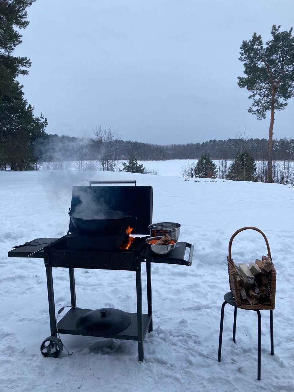 - Зона барбекю с мангалом и казаном.