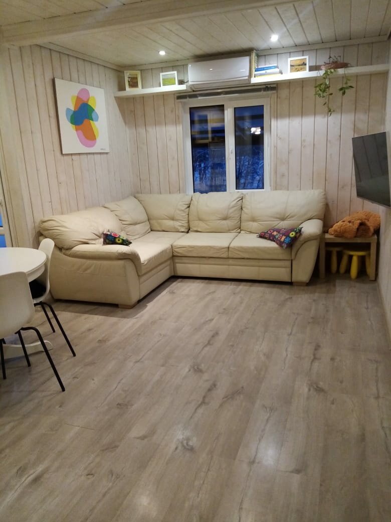 Из заявленных 9+1 мест, реально 4+4. Всего две спальни 1 взрослая и в детской два спальных места, остальные — диван в проходной комнате, и диван в бане. Поэтому стоимость необоснованно завышена. Были вчетвером 2 взр+2 реб. Впечатление произвел ТВ в спальне взрослых(без антенны, без интернета) по которому можно было просмотреть флешку, кстати в бане тоже есть Тв и он смарт, но там интернета тоже нет…В остальном если бы не неполадки с напряжением в сети(возможно из-за морозов) и некорректно работающей из-за этого посудомойки, все ок. Но за такие деньги по крайней мере 1 сеанс в бане можно было бы включить в стоимость