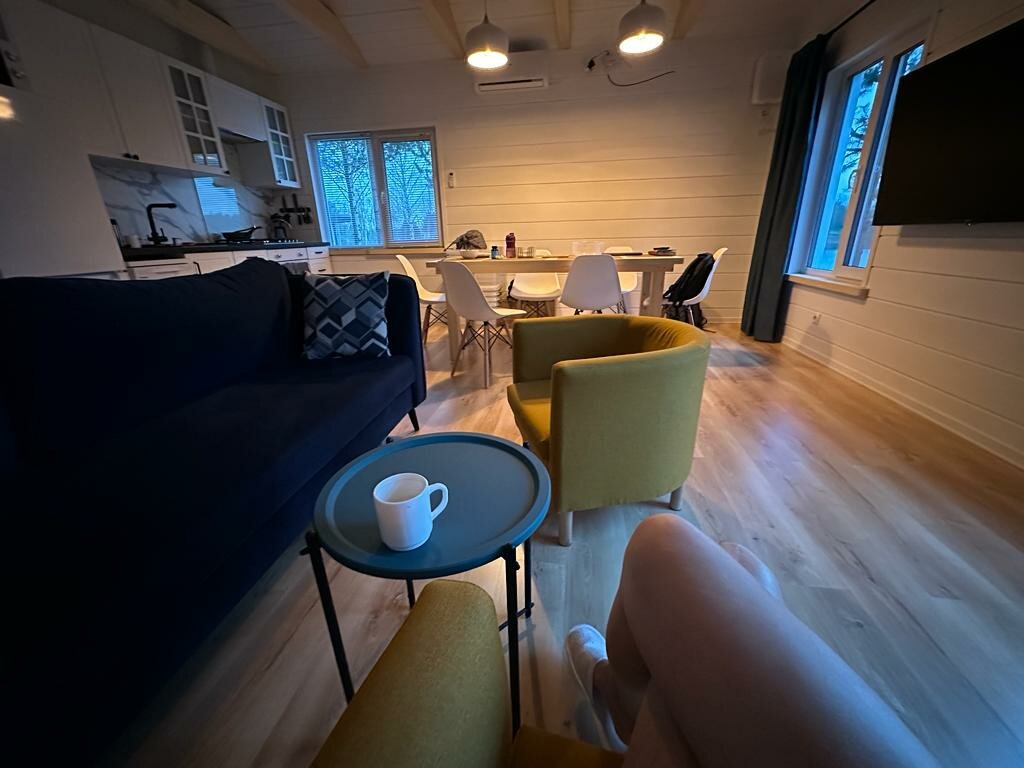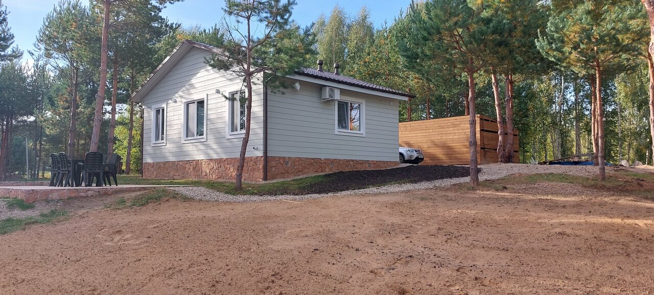 Лучшая база отдыха!Находится на острове,где только вы,озеро у дома.Сам домик очень чистый,даже под кроватью чисто.Внутри всё есть,очень много всевозможной посуды.Зимой очень тепло,в каждой комнате есть даже очиститель воздуха.В распоряжении есть также настольные игры.Есть крытая парковка для машин.Заселение и выселение бесконтактное,что тоже очень удобно