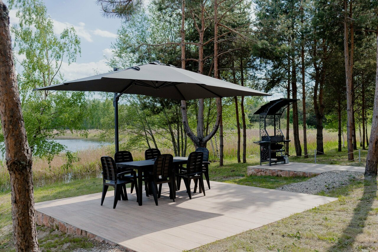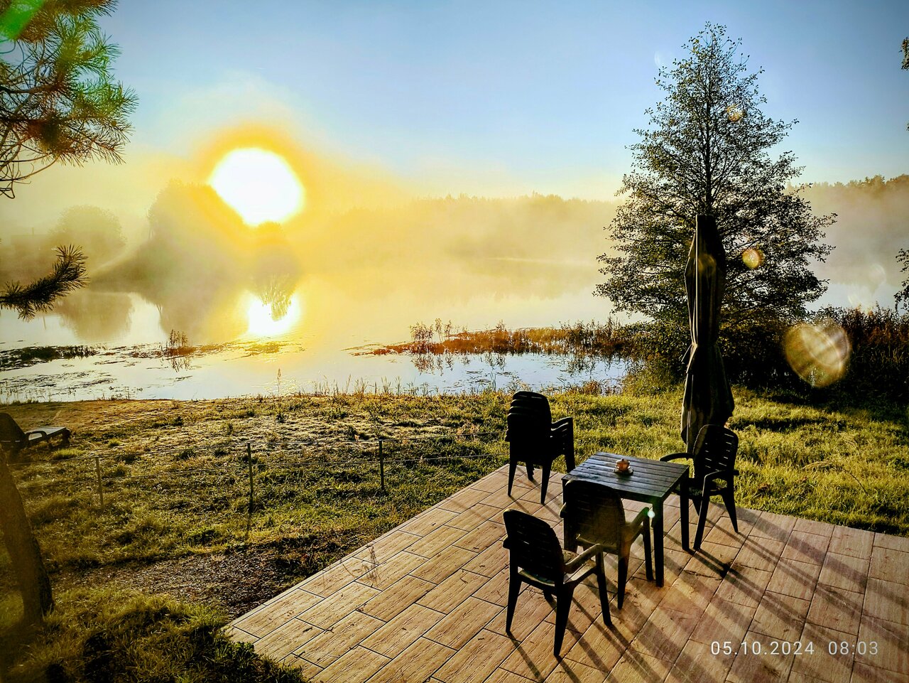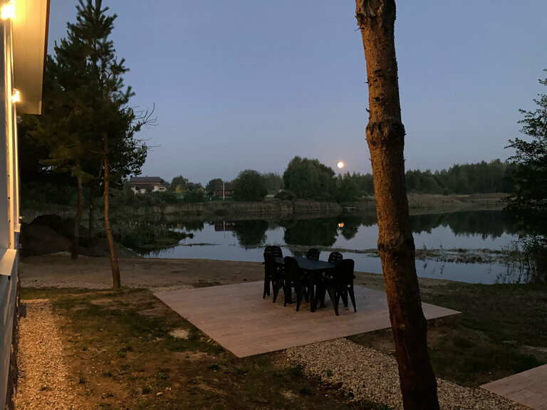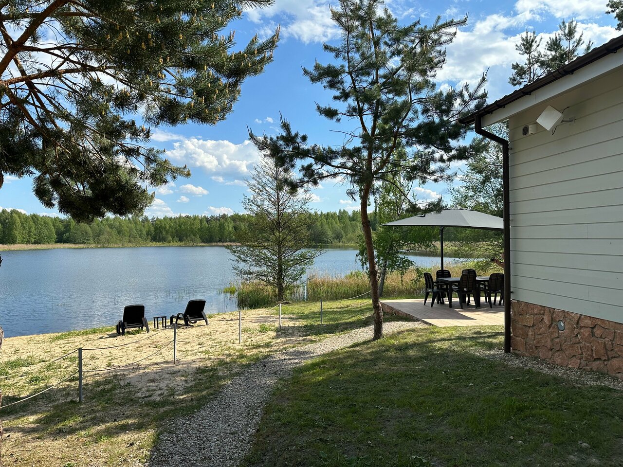 Замечательное, уютное местечко для отдыха. Домик, в котором мы жили, стоит прямо на живописном берегу небольшого лесного озера, к которому спускаешься по песчаному пляжу. Вода чистая и тёплая. Антуражем для наших застолий на свежем воздухе была семейка лебедей с пятью птенцами. Поэтому огромный телевизор в доме фактически не включали. Зато были приятно удивлены предусмотрительностью хозяев: в доме есть абсолютно все необходимое. Интерьеры оформлены стильно и со вкусом. Оборудование, посуда, белье, новое и чистое. Спасибо, даже уезжать не хотелось!