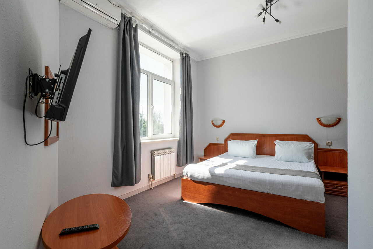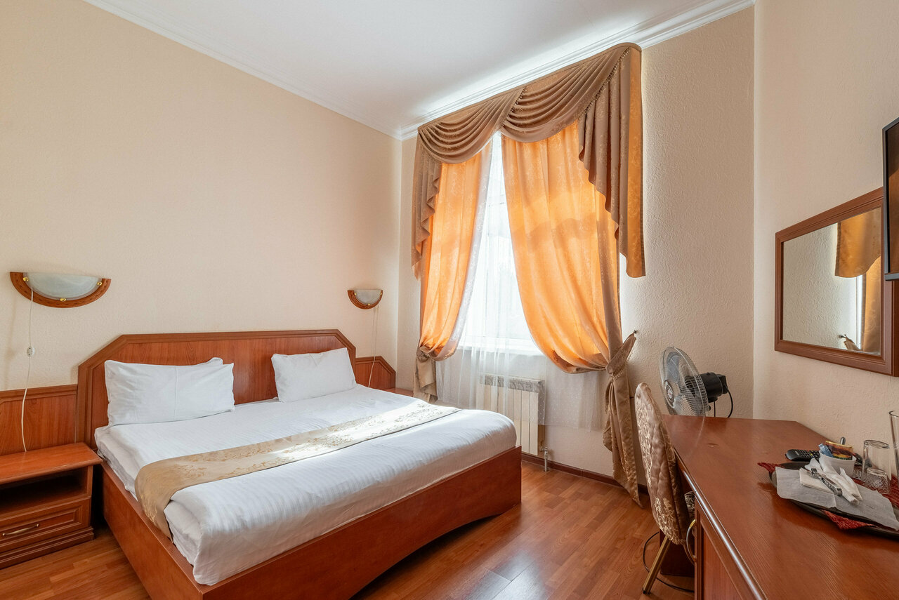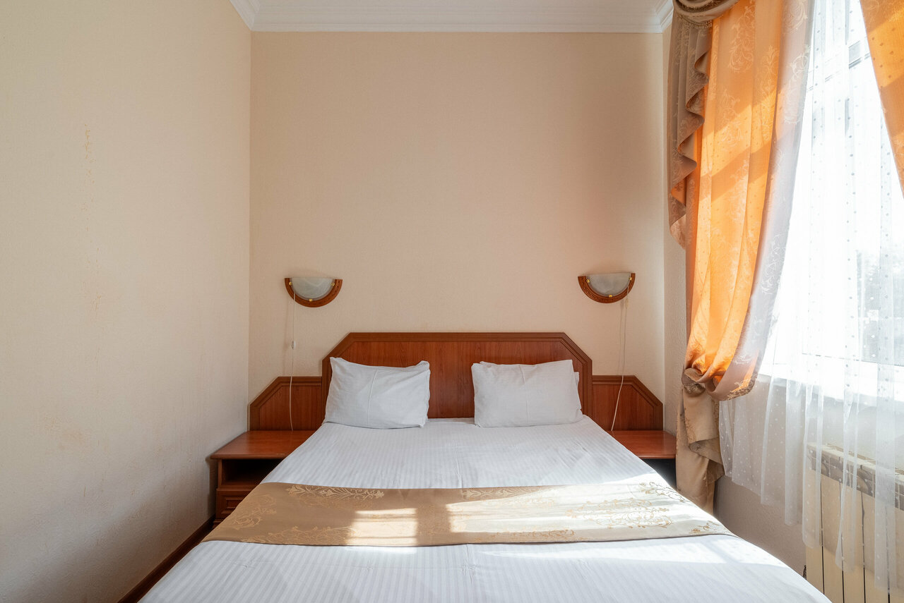 Брали простой номер за 2200.В общем не все так печально, но не хватает микроволновки в номере, чайника и холодильника. Обратила внимание на шторы, областно разной длинны’ одна больше другой’..Но охото и выделить плюсы: парковка ….двор закрыт со всех сторон, насаждения очень эстетично вписываются в архитектуру здания.. Приятно зайти в саму гостиницу. Очень чистенько и приветливый персонал….