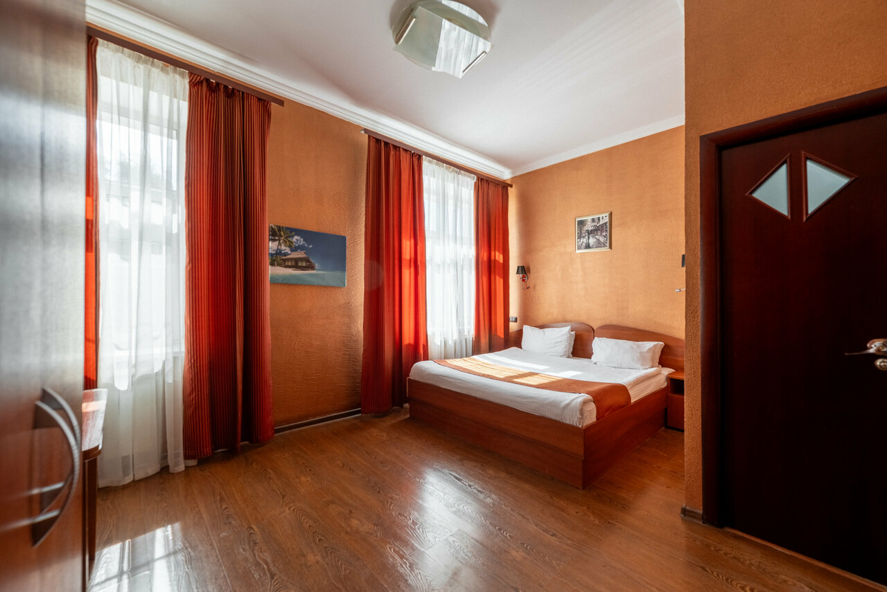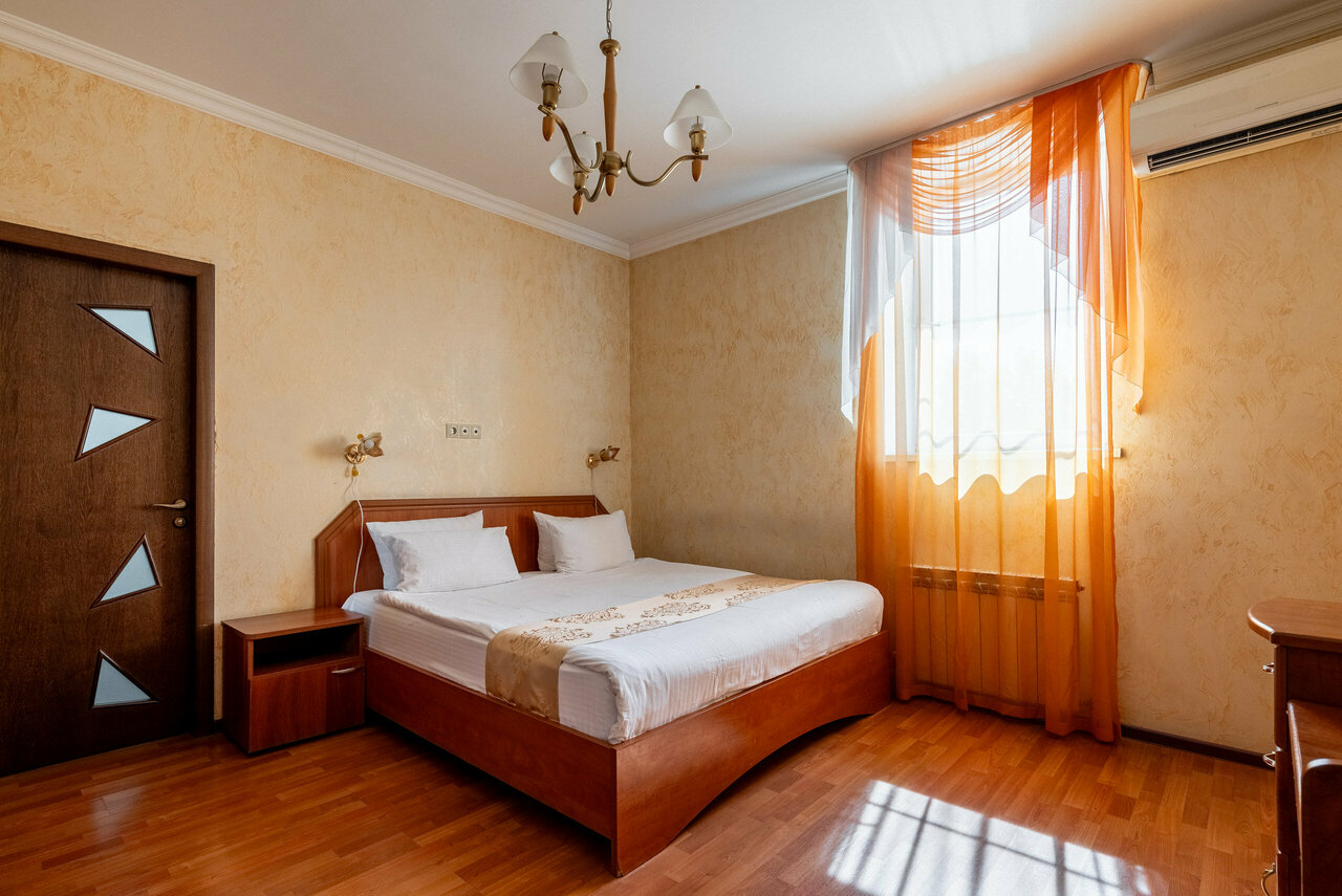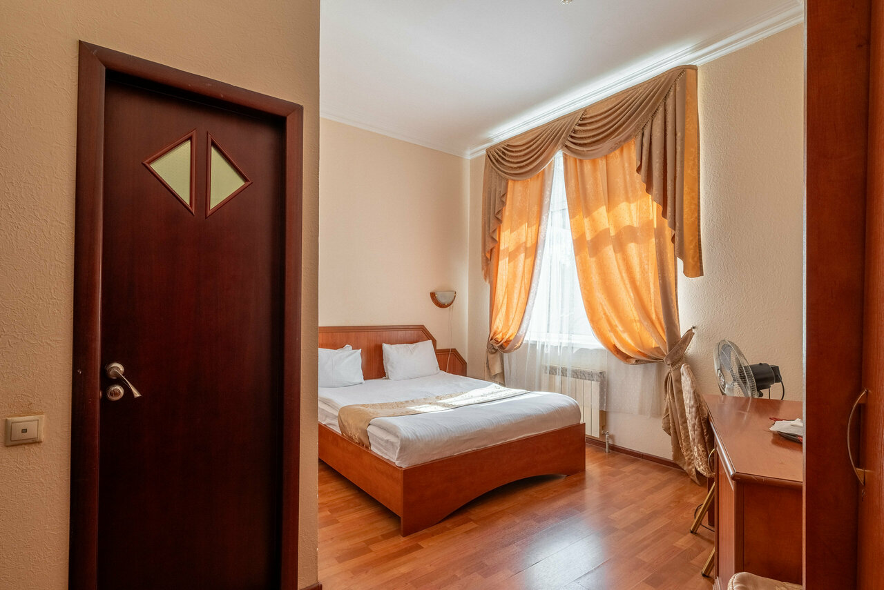 Брали простой номер за 2200.В общем не все так печально, но не хватает микроволновки в номере, чайника и холодильника. Обратила внимание на шторы, областно разной длинны’ одна больше другой’..Но охото и выделить плюсы: парковка ….двор закрыт со всех сторон, насаждения очень эстетично вписываются в архитектуру здания.. Приятно зайти в саму гостиницу. Очень чистенько и приветливый персонал….