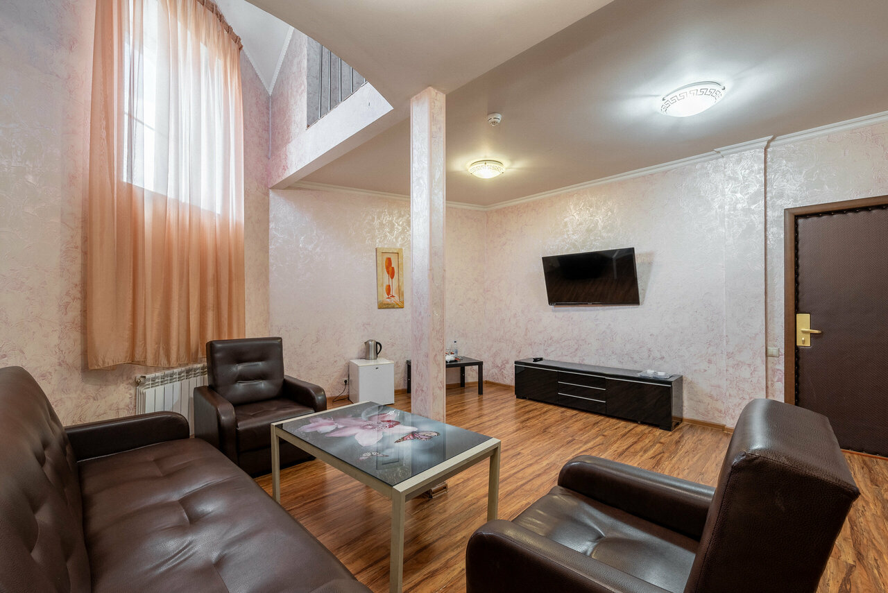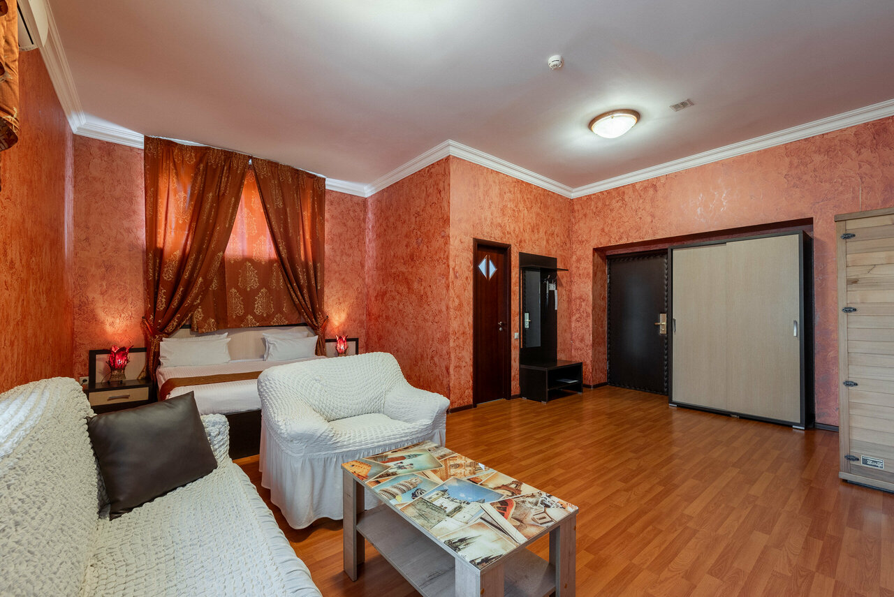 Минусы: вместо бассейна тут джакузи, нет халатов, за такую сумму можно было бы халаты во всех номерах давать. Плюсы: хороший, добрый персонал, спокойно можно отдохнуть без проблем, рядом есть магазины ночные, шашлычная, можно всё купить. В ближайшее время хочется номер снять с Алисой, позже дополню отзыв как там